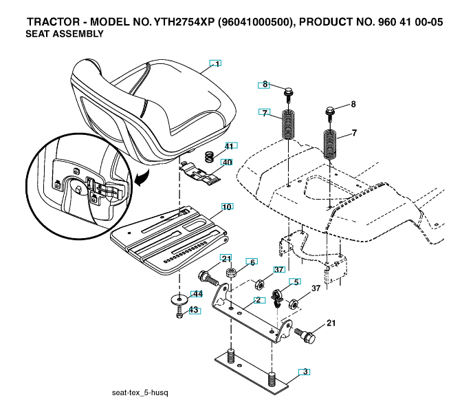 Zeichnung für Husqvarna Gartentraktor SITZ Sollten Sie Fragen zu einem Ersatzteil von Husqvarna Gartentraktor YTH2754XP haben, können Sie uns gerne eine Ersatzteilanfrage (mit einem Foto vom Typenschild Ihres Gerätes) stellen.
