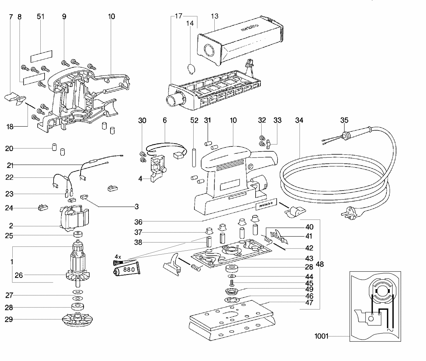 Zeichnung 1 Sollten Sie Fragen zu einem Ersatzteil von Metabo SR 226 Schwingschleifer 600226251 haben, können Sie uns gerne eine E-Mail (mit einem Foto vom Typenschild Ihres Gerätes) schreiben oder eine Ersatzteilanfrage stellen.