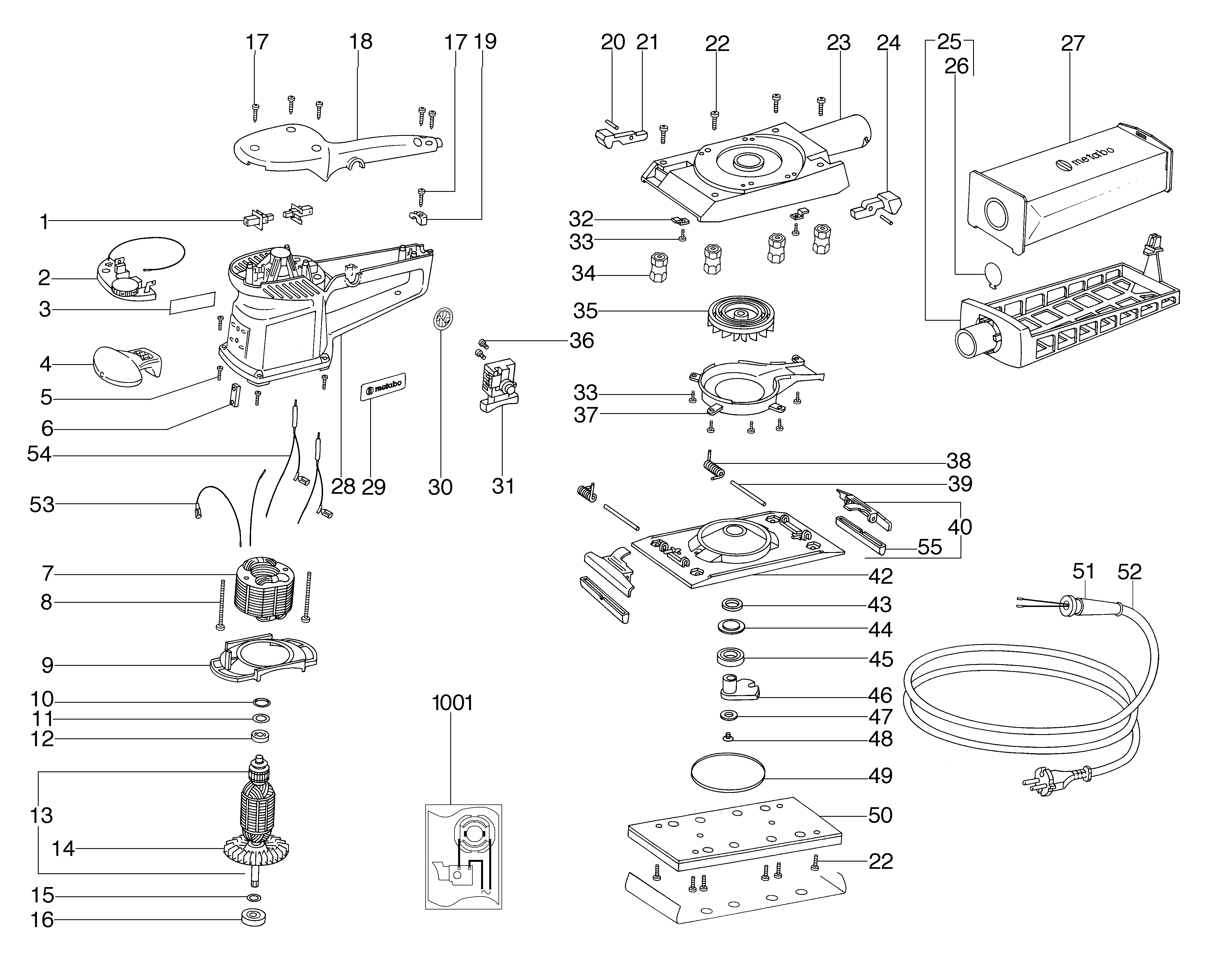 Zeichnung 1 Sollten Sie Fragen zu einem Ersatzteil von Metabo SR E 357 Schwingschleifer 600357191 haben, können Sie uns gerne eine E-Mail (mit einem Foto vom Typenschild Ihres Gerätes) schreiben oder eine Ersatzteilanfrage stellen.
