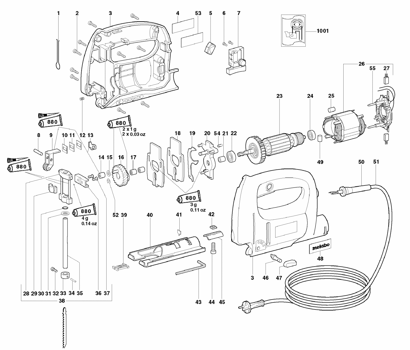 Zeichnung 1 Sollten Sie Fragen zu einem Ersatzteil von Metabo ST 50 PENDIX Stichsäge 604000000 haben, können Sie uns gerne eine E-Mail (mit einem Foto vom Typenschild Ihres Gerätes) schreiben oder eine Ersatzteilanfrage stellen.