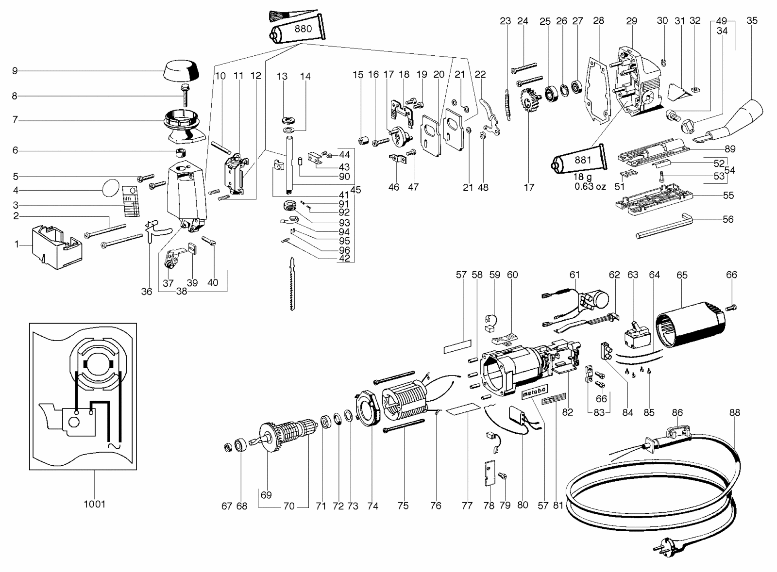 Zeichnung 1 Sollten Sie Fragen zu einem Ersatzteil von Metabo ST EP 700 Stichsäge 607000251 haben, können Sie uns gerne eine E-Mail (mit einem Foto vom Typenschild Ihres Gerätes) schreiben oder eine Ersatzteilanfrage stellen.