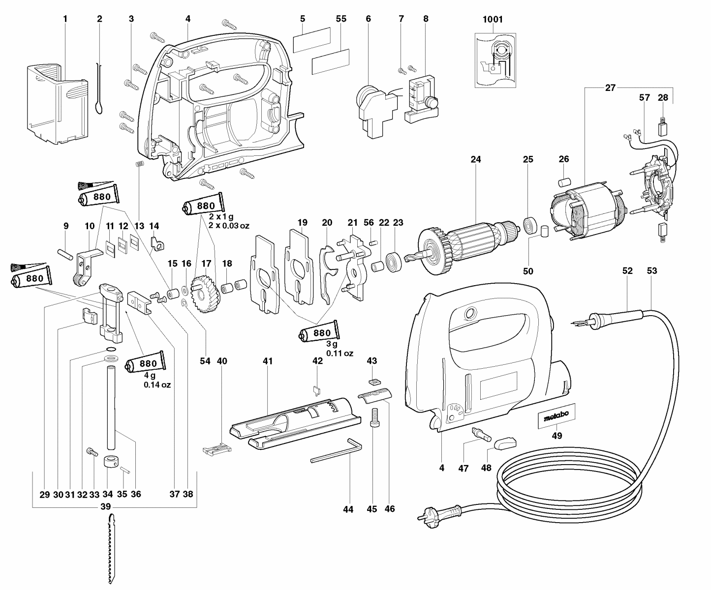 Zeichnung 1 Sollten Sie Fragen zu einem Ersatzteil von Metabo STE 70 Stichsäge 605700420 haben, können Sie uns gerne eine E-Mail (mit einem Foto vom Typenschild Ihres Gerätes) schreiben oder eine Ersatzteilanfrage stellen.