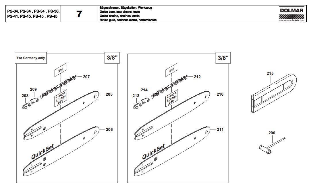 Ersatzteile für Dolmar Kettensäge PS-41: