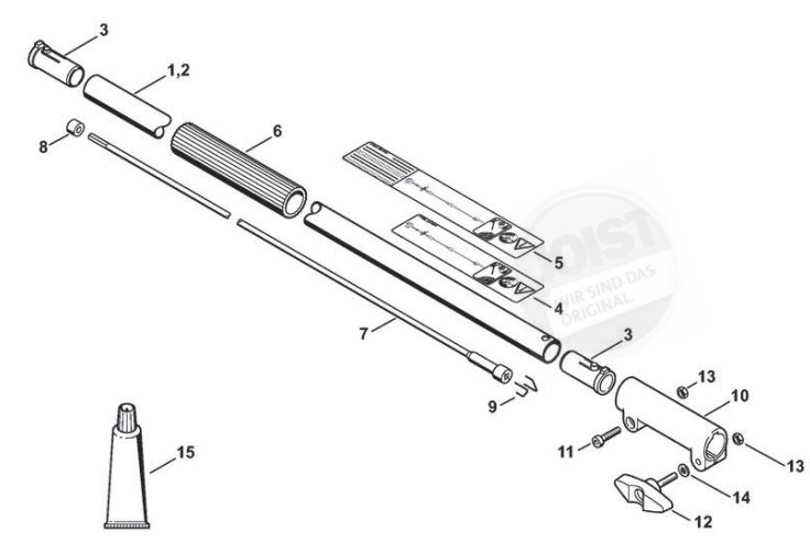 Hier finden Sie alle Ersatzteile von Stihl Kombi- MultiSystem KM 94 RC-E der Zeichnungsgruppe Schaftverlängerung 1 m: