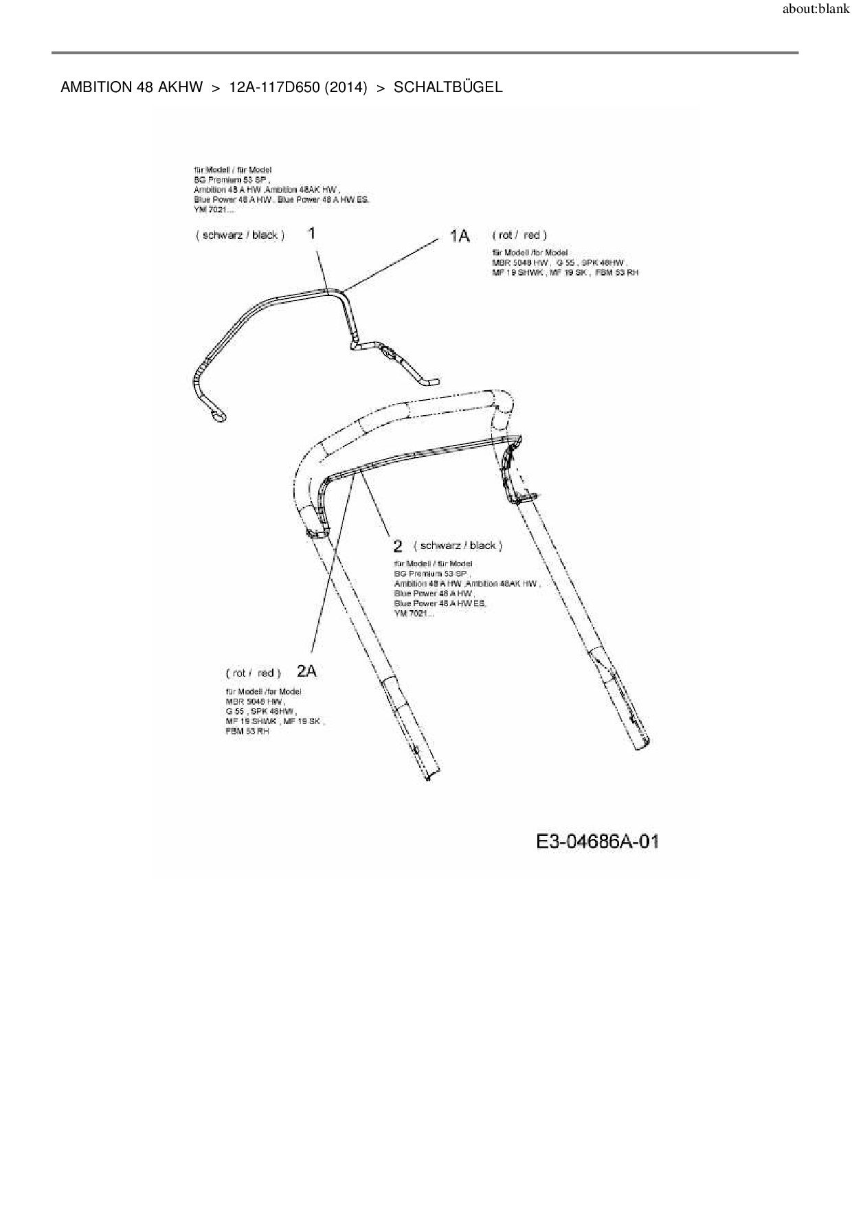Ersatzteile für Motormäher mit Antrieb Wolf-Garten Ambition 48 AKHW aus der Zeichnung Schaltbügel: