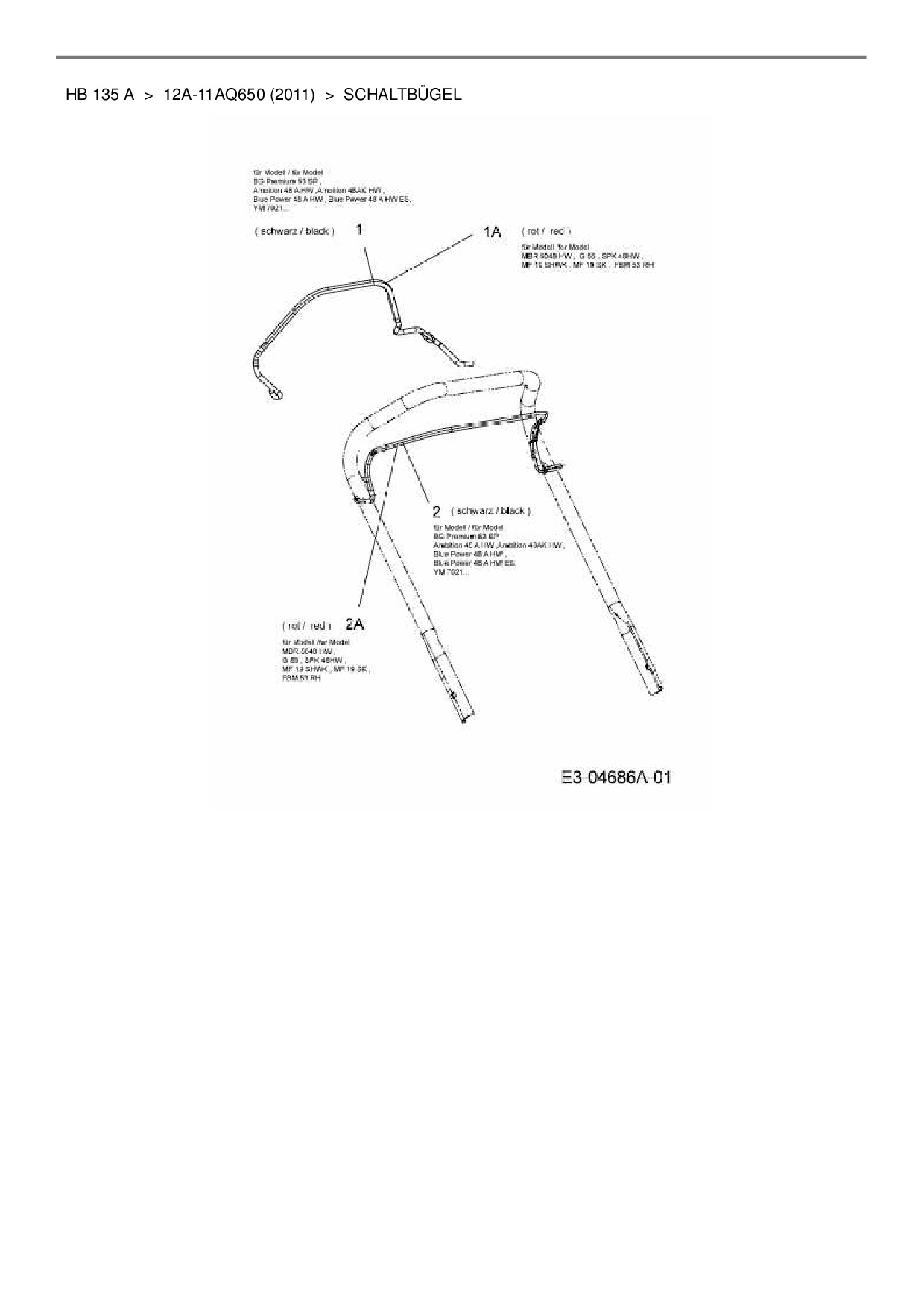 Ersatzteile für Motormäher mit Antrieb Wolf-Garten HB 135 A aus der Zeichnung Schaltbügel: