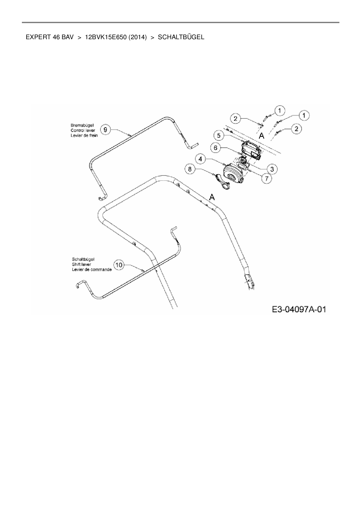 Ersatzteile für Motormäher mit Antrieb Wolf-Garten Expert Expert 46 BAV aus der Zeichnung Schaltbügel: