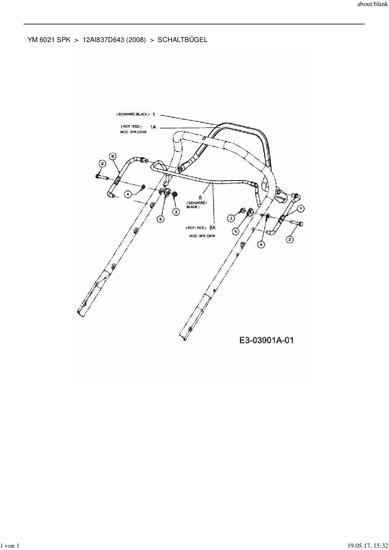 Ersatzteile für Motormäher mit Antrieb Yard-Man YM 6021 SPK aus der Zeichnung Schaltbügel: