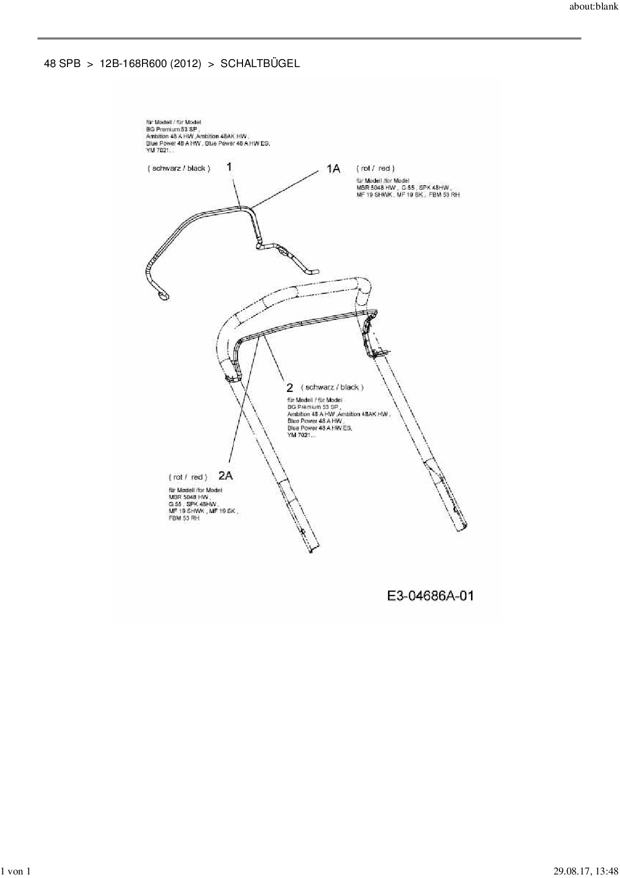 Ersatzteile für Motormäher mit Antrieb MTD 48 SPB aus der Zeichnung Schaltbügel: