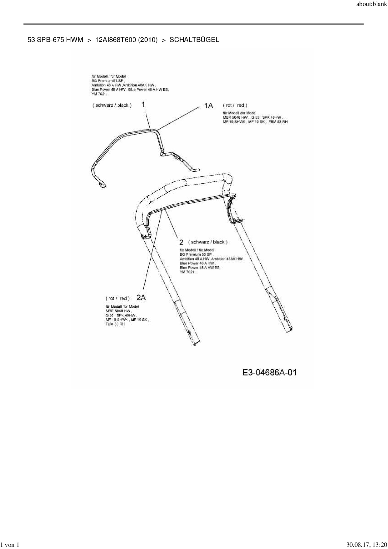 Ersatzteile für Motormäher mit Antrieb MTD 53 SPB-675 HWM aus der Zeichnung Schaltbügel: