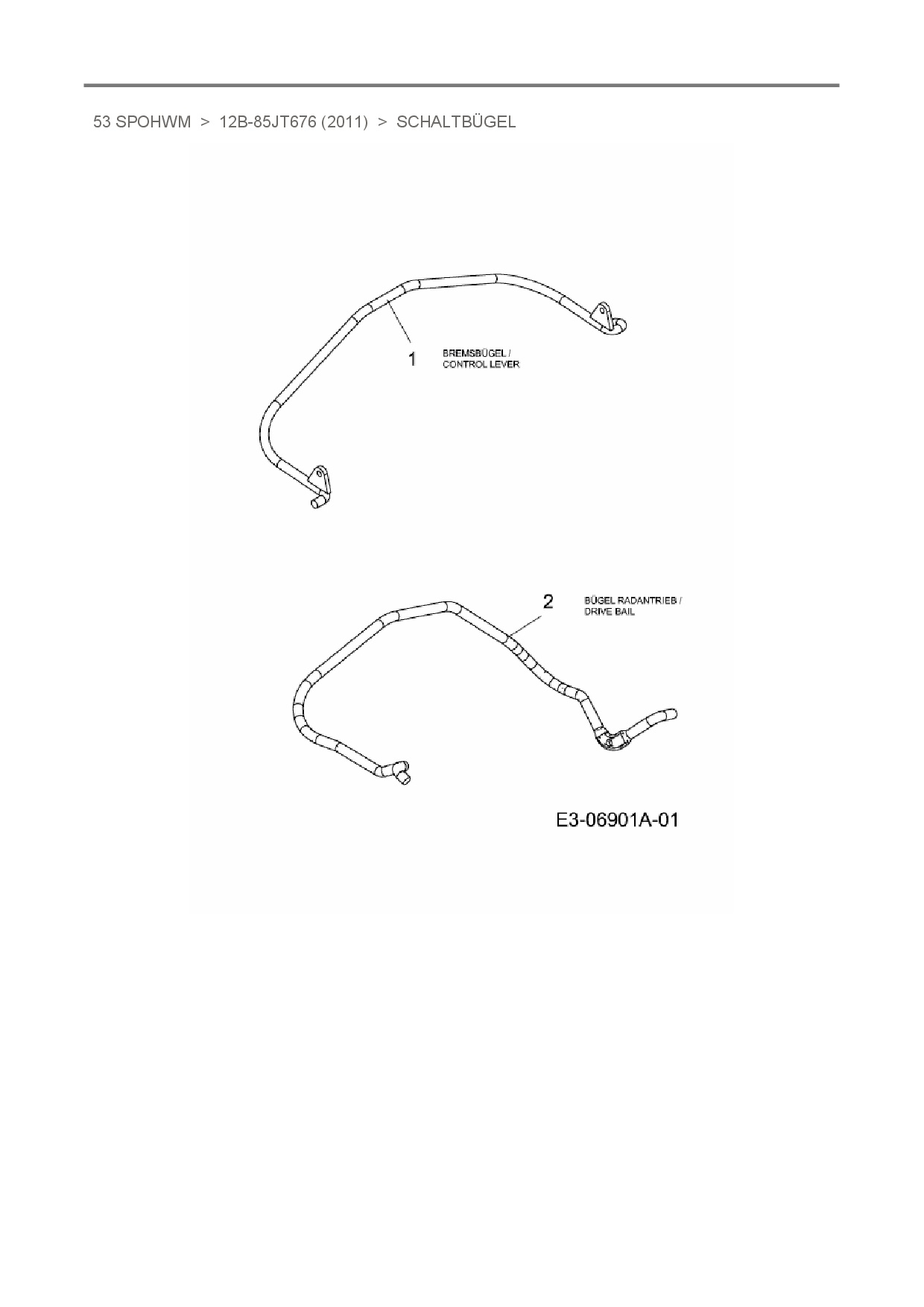 Ersatzteile für Motormäher mit Antrieb MTD 53 SPOHWM aus der Zeichnung Schaltbügel:
