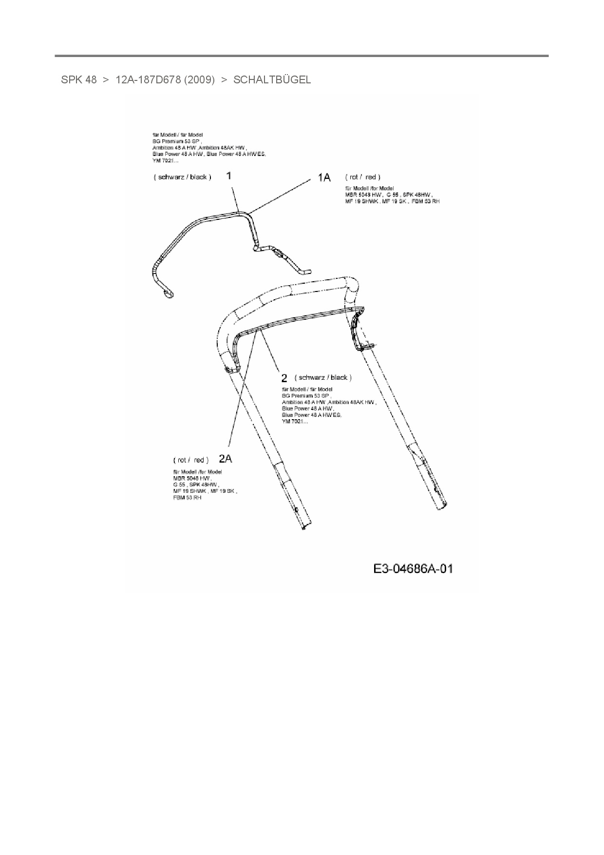 Ersatzteile für Motormäher mit Antrieb MTD SPK 48 aus der Zeichnung Schaltbügel: