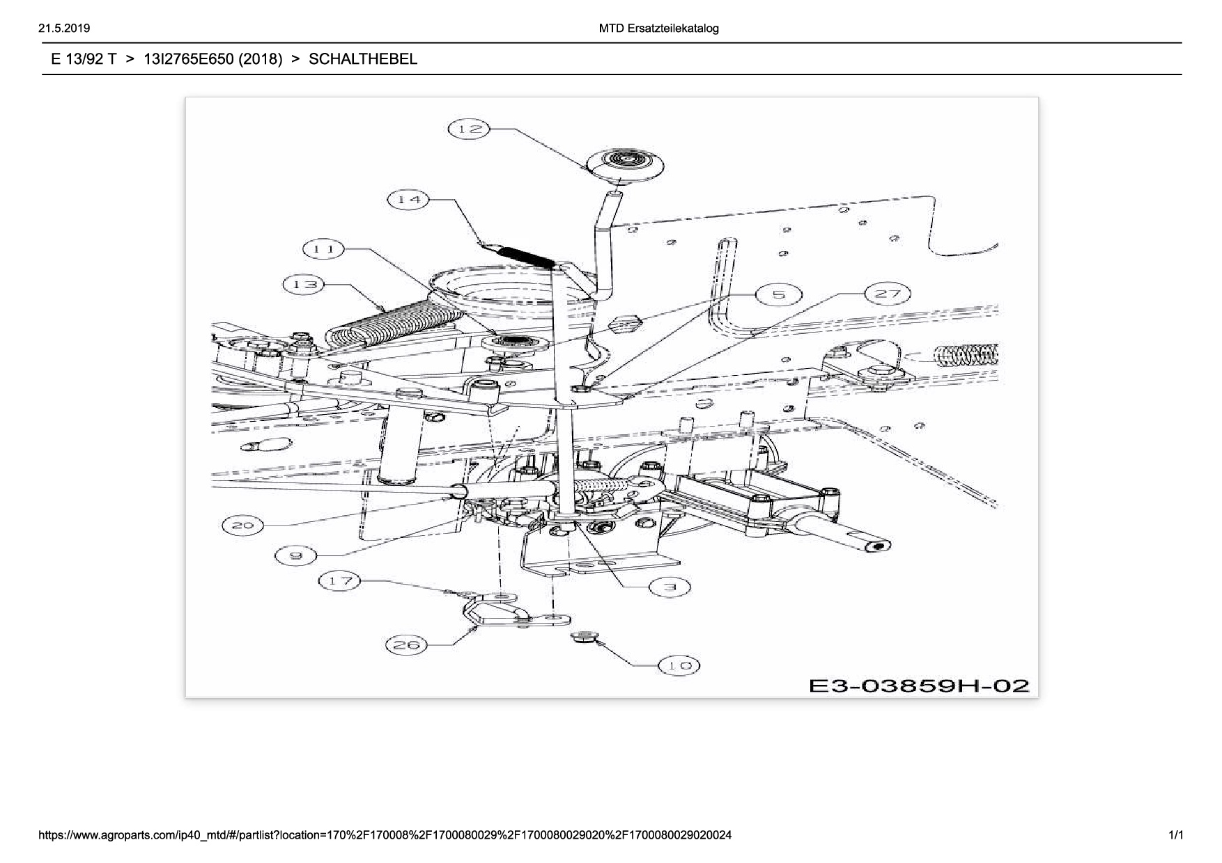 Ersatzteile für Rasentraktor Wolf-Garten Expert E 13/92 T aus der Zeichnung Schalthebel: