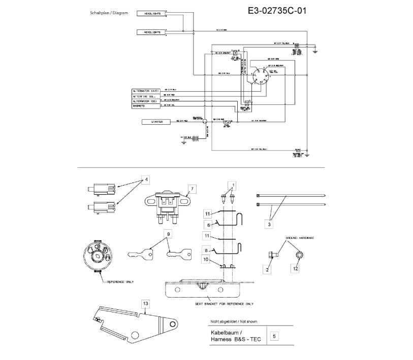 Hier finden Sie alle Ersatzteile für Oleo-Mac Rasentraktor TORNADO 97/13.5 T aus der Zeichnung für Schaltplan (1/2):
