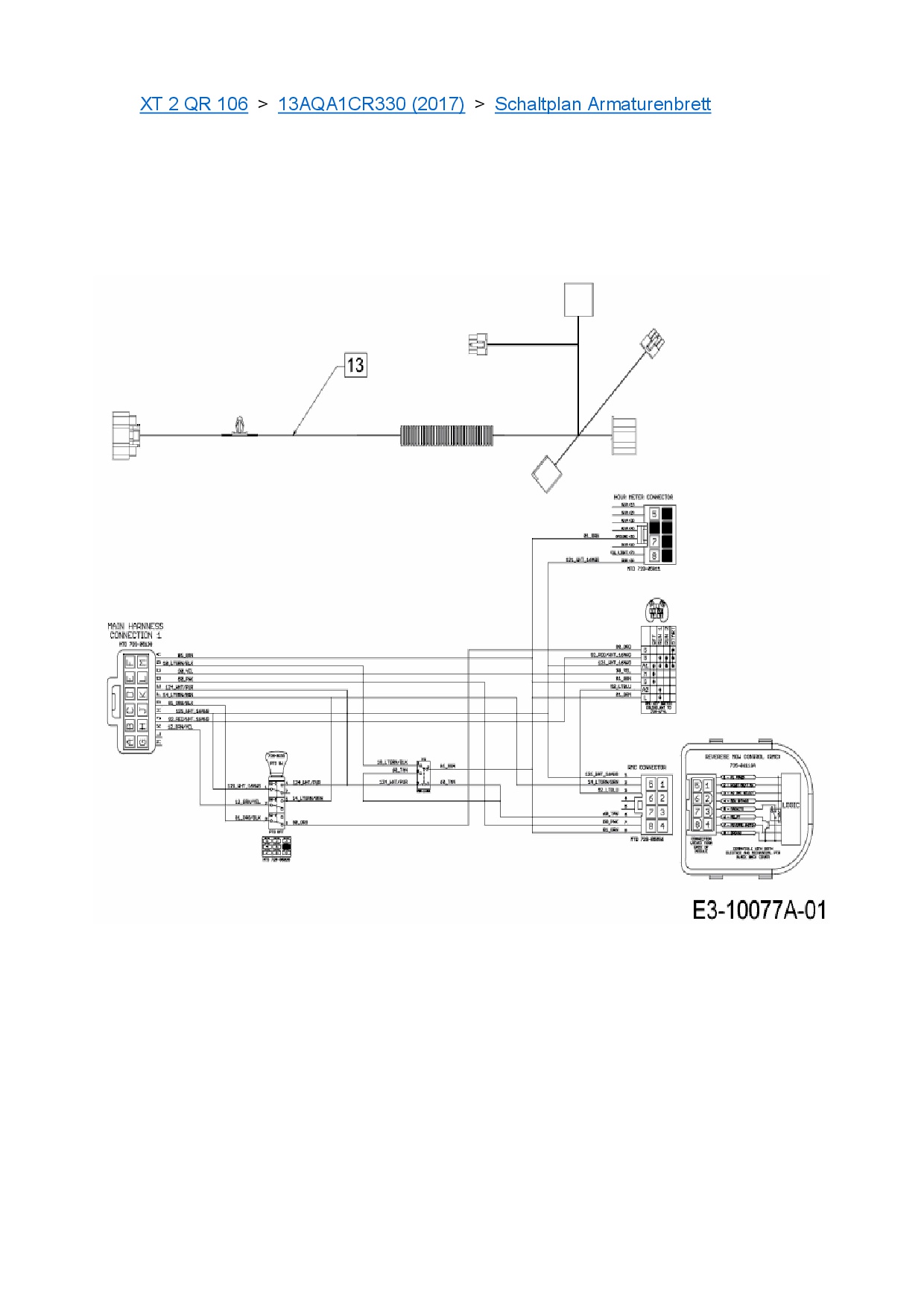 Ersatzteile für Rasentraktor Cub Cadet XT 2 QR 106 aus der Zeichnung Schaltplan Armaturenbrett: