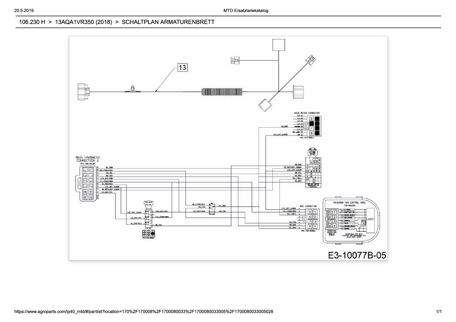 Ersatzteile für Rasentraktor Wolf-Garten Expert 106.230 H aus der Zeichnung Schaltplan Armaturenbrett: