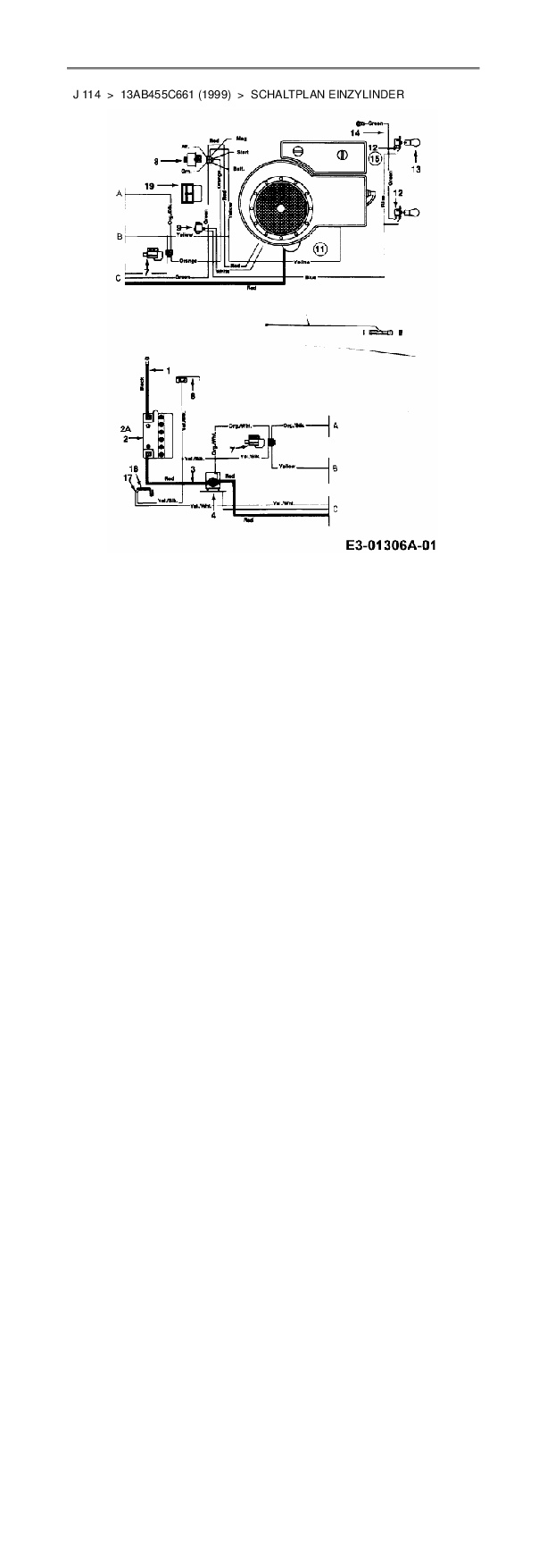 Ersatzteile für Rasentraktor MTD J 114 aus der Zeichnung Schaltplan Einzylinder: