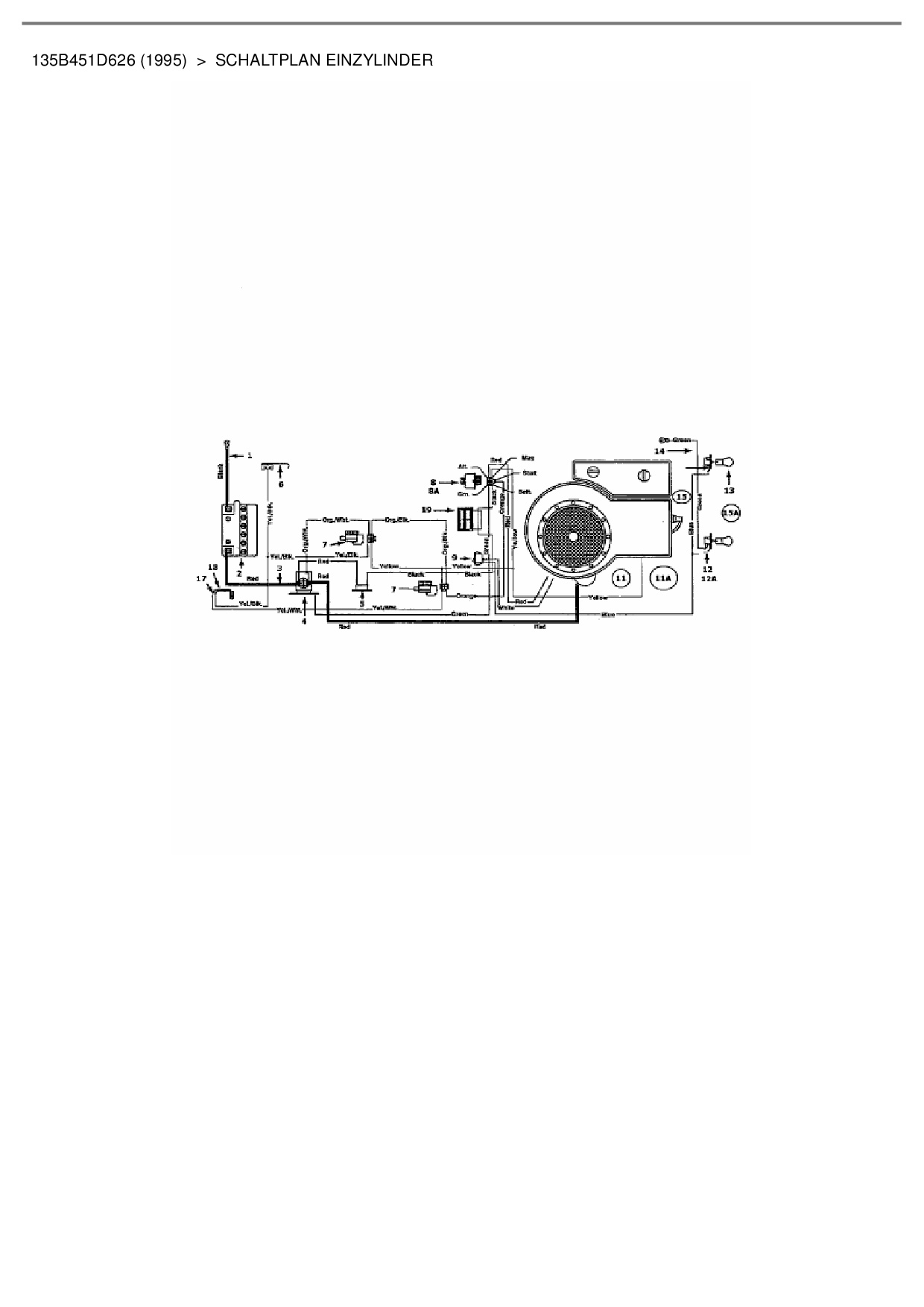 Ersatzteile für Rasentraktor Columbia 105/810 N aus der Zeichnung Schaltplan Einzylinder: