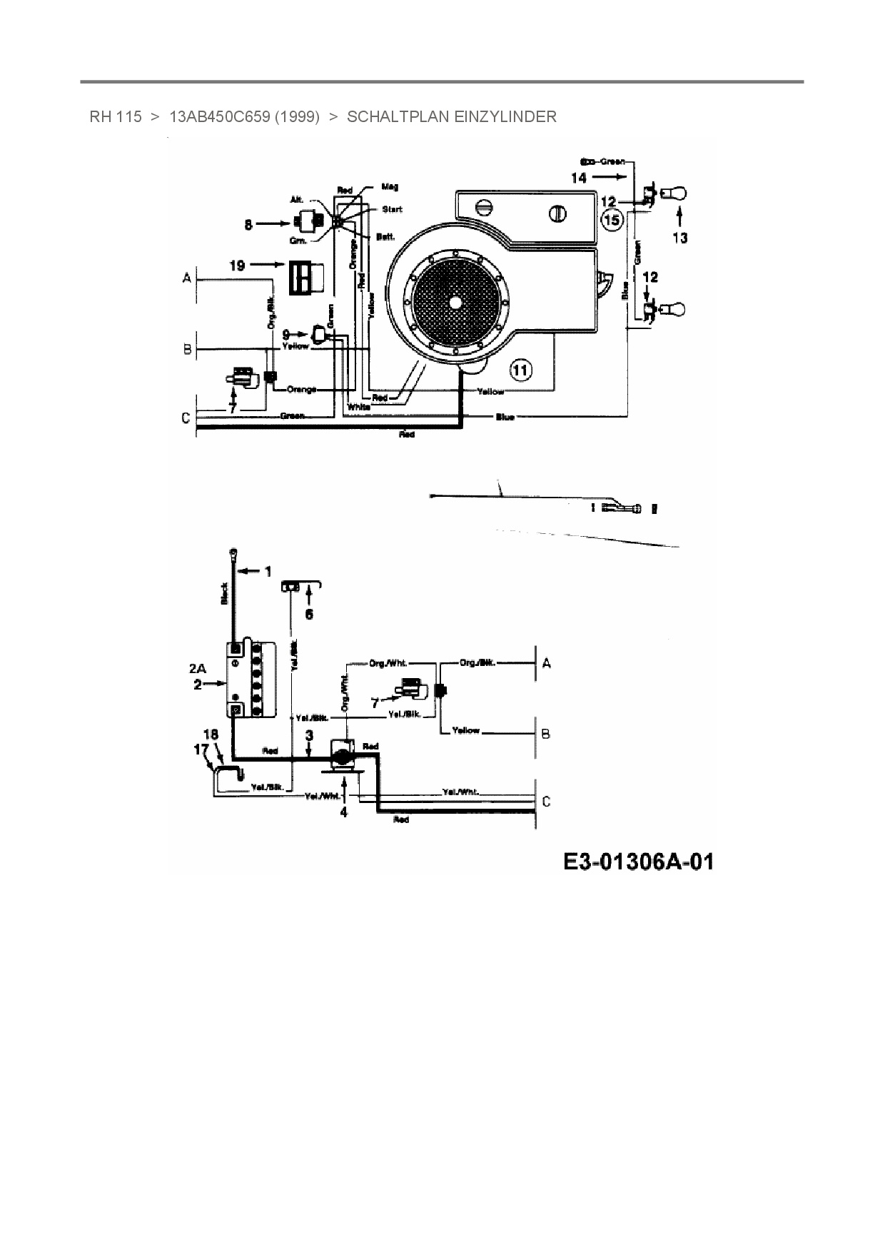 Ersatzteile für Rasentraktor Mastercut RH 115 aus der Zeichnung Schaltplan Einzylinder: