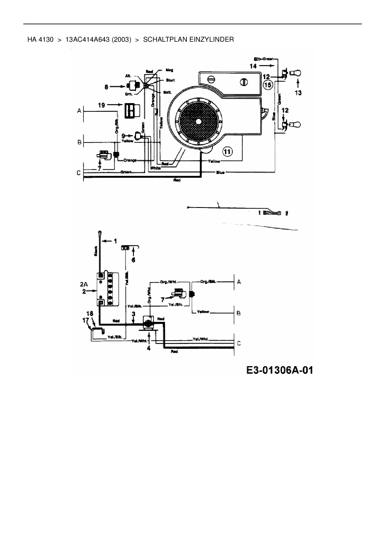 Ersatzteile für Rasentraktor Yard-Man HA 4130 aus der Zeichnung Schaltplan Einzylinder: