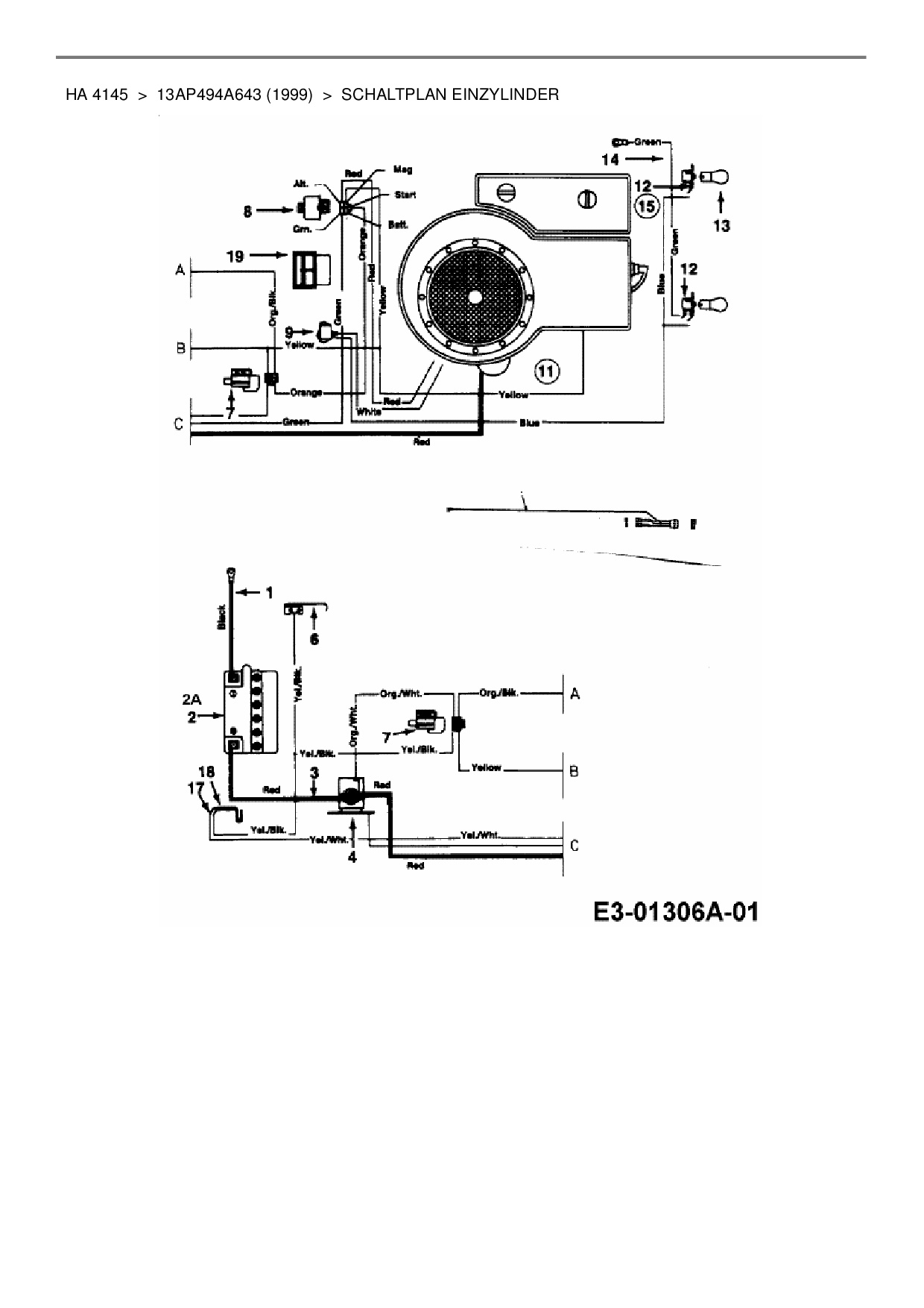 Ersatzteile für Rasentraktor Yard-Man HA 4145 aus der Zeichnung Schaltplan Einzylinder:
