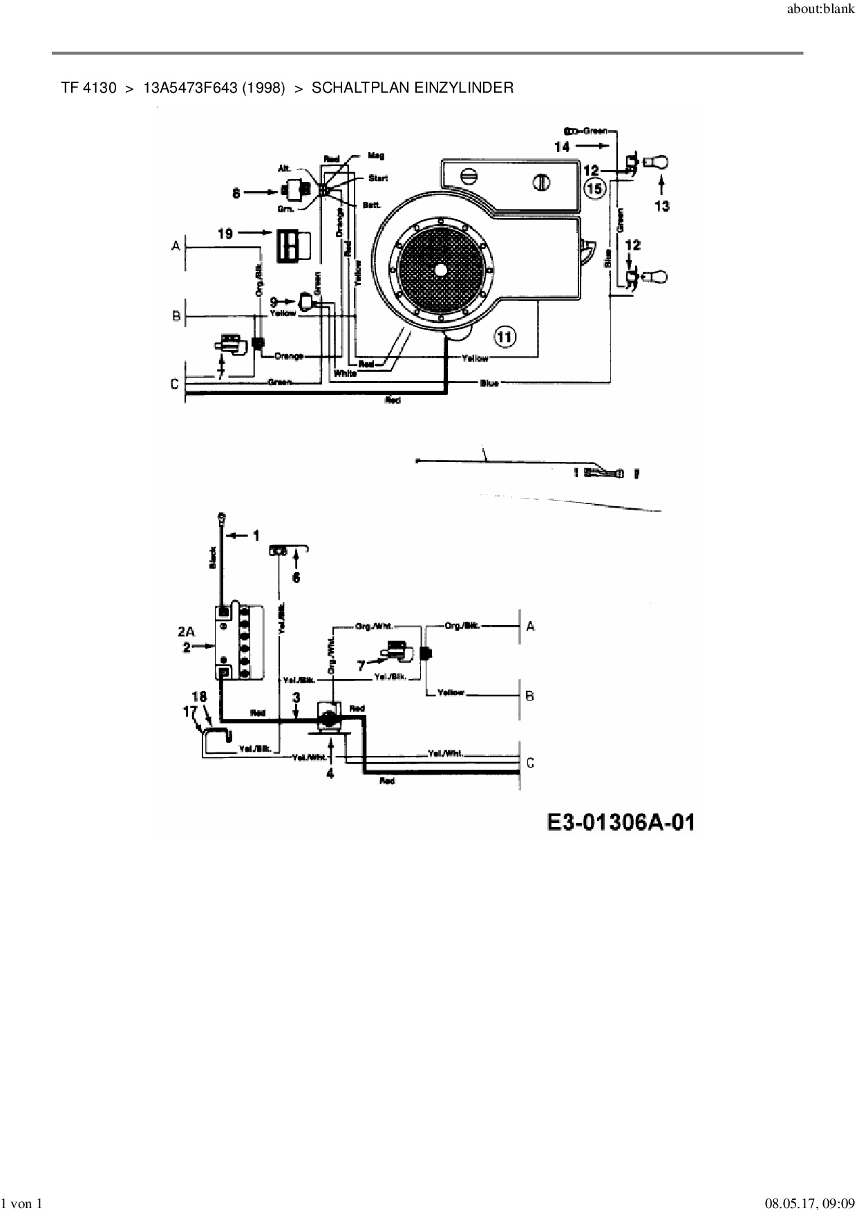 Ersatzteile für Rasentraktor Yard-Man TF 4130 aus der Zeichnung Schaltplan Einzylinder: