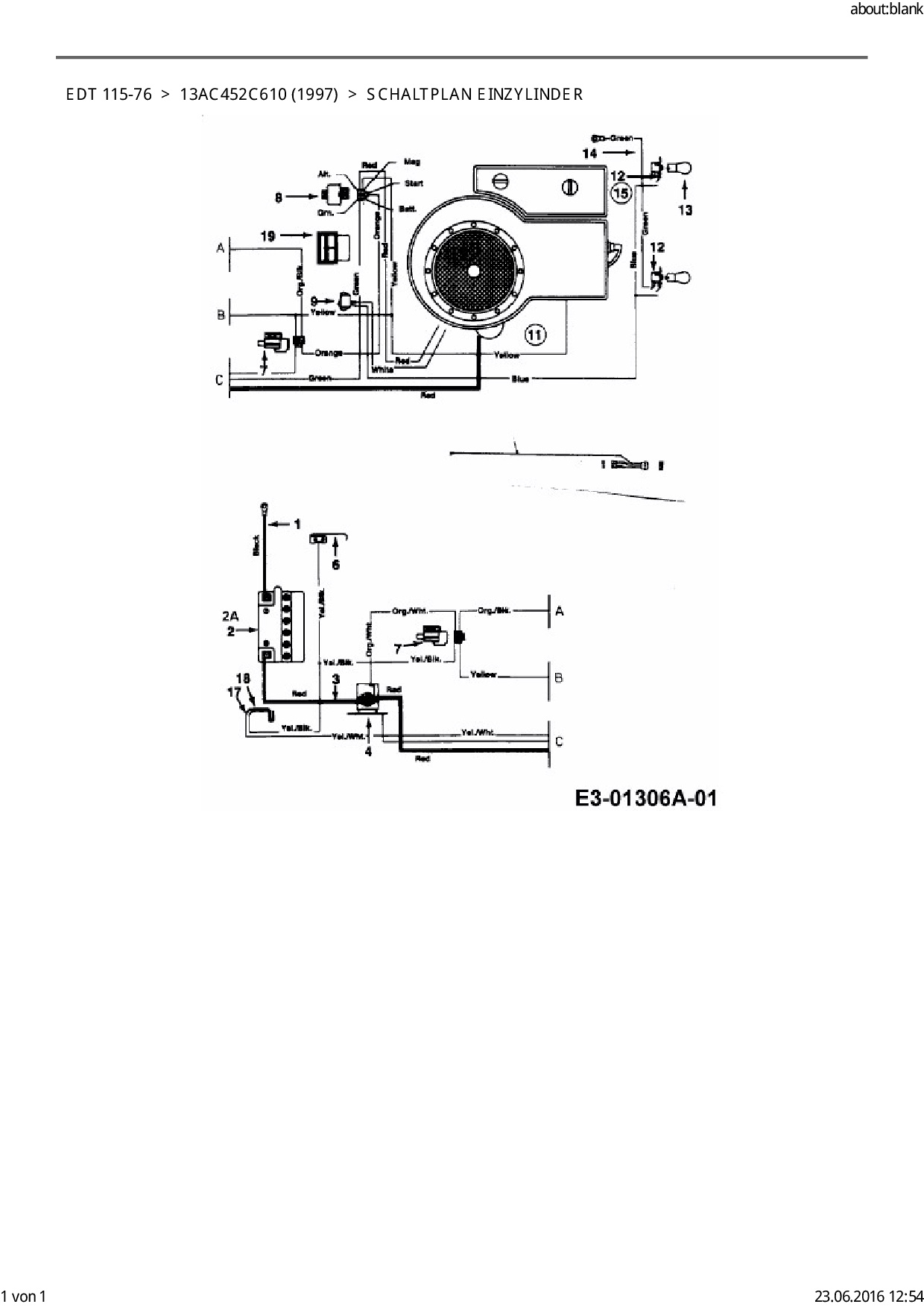 Ersatzteile für Rasentraktor EDT EDT 115-76 aus der Zeichnung Schaltplan Einzylinder: