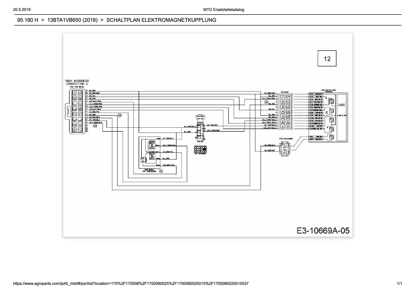 Ersatzteile für Rasentraktor Wolf-Garten Expert 95.180 H aus der Zeichnung Schaltplan Elektromagnetkupplung (2):
