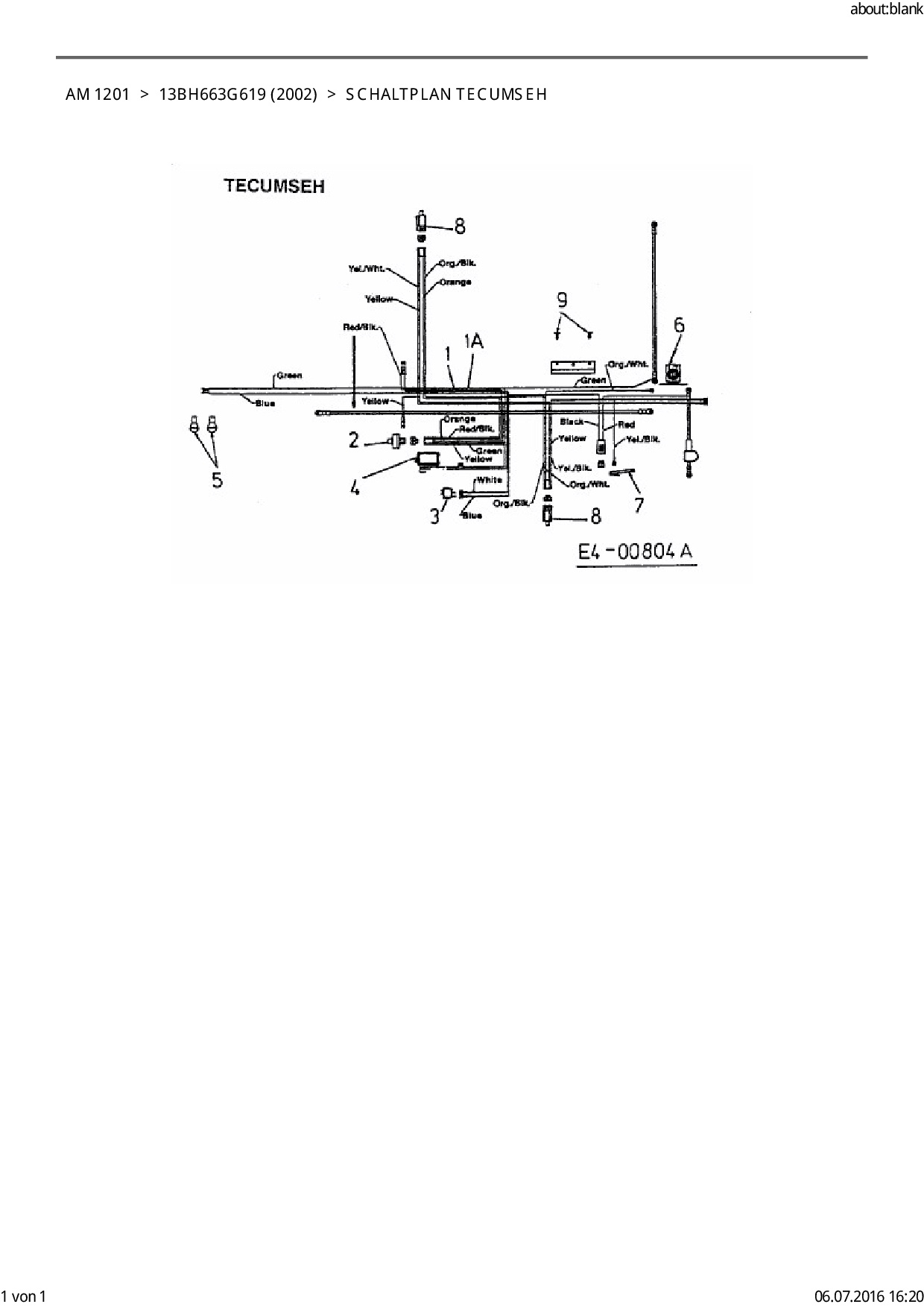 Ersatzteile für Rasentraktor FLEURELLE AM 1201 aus der Zeichnung Schaltplan Tecumseh: