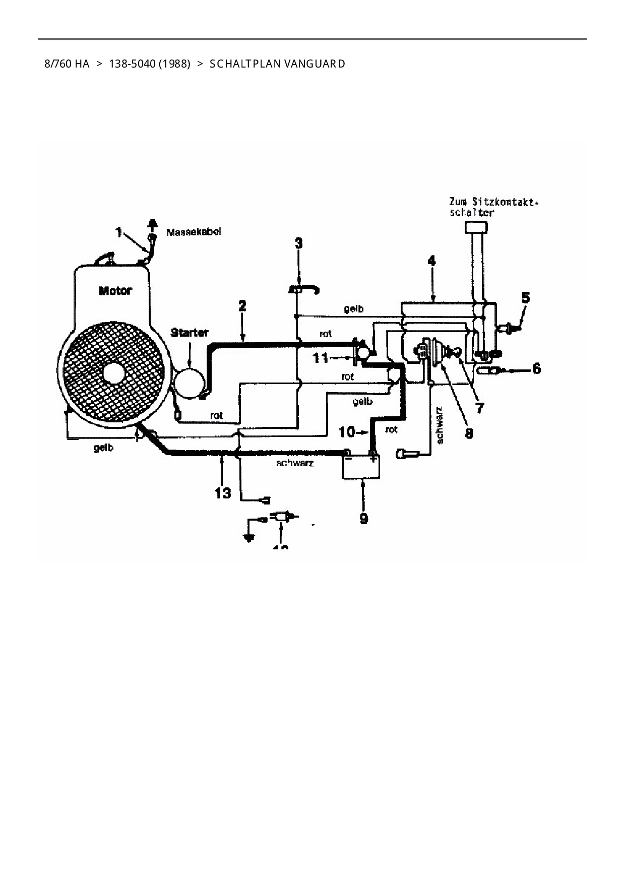 Ersatzteile für Rasentraktor Columbia 8/760 HA aus der Zeichnung Schaltplan Vanguard: