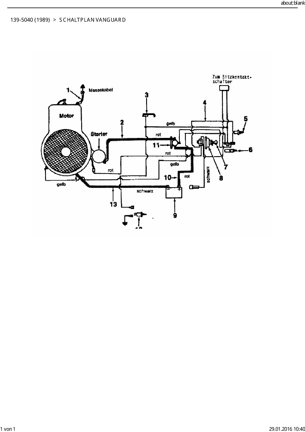 Ersatzteile für Rasentraktor Columbia 8/760 HA aus der Zeichnung Schaltplan Vanguard: