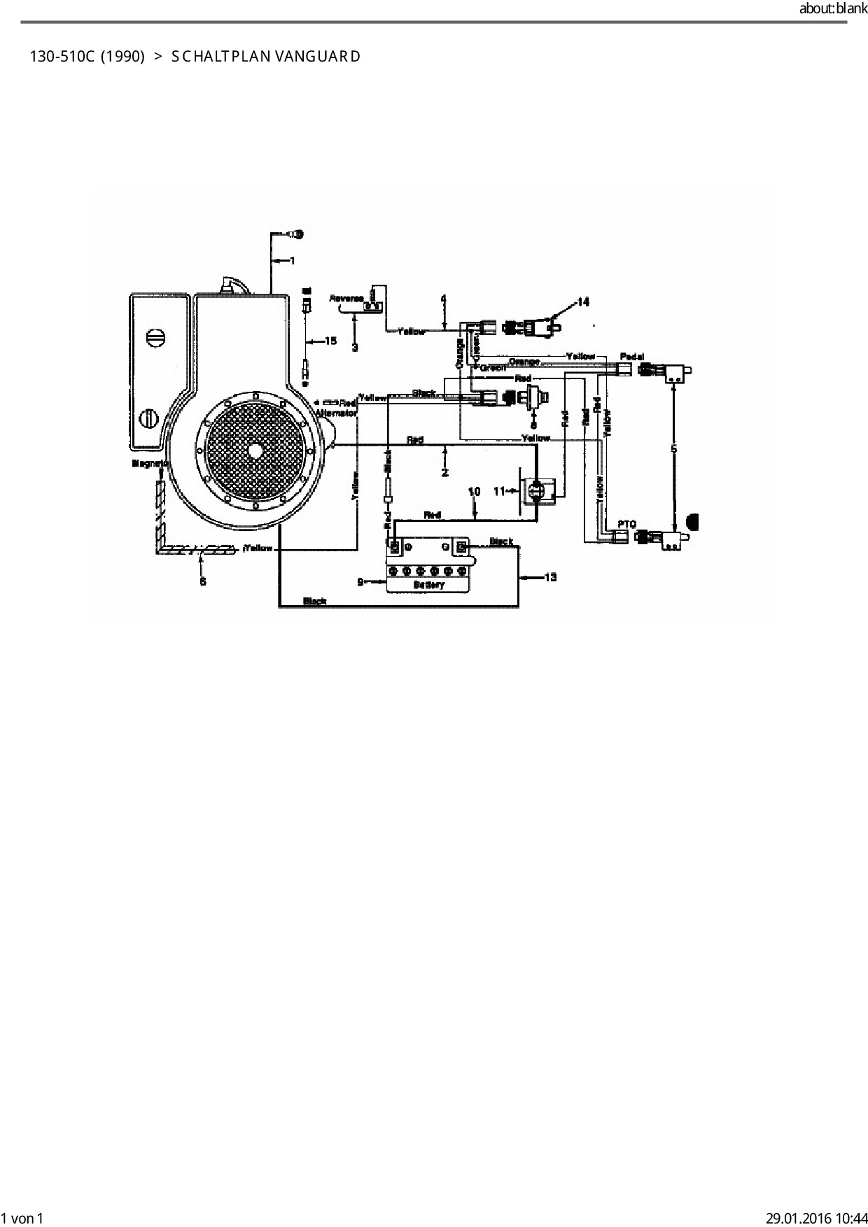 Ersatzteile für Rasentraktor Columbia 8/760 HA aus der Zeichnung Schaltplan Vanguard: