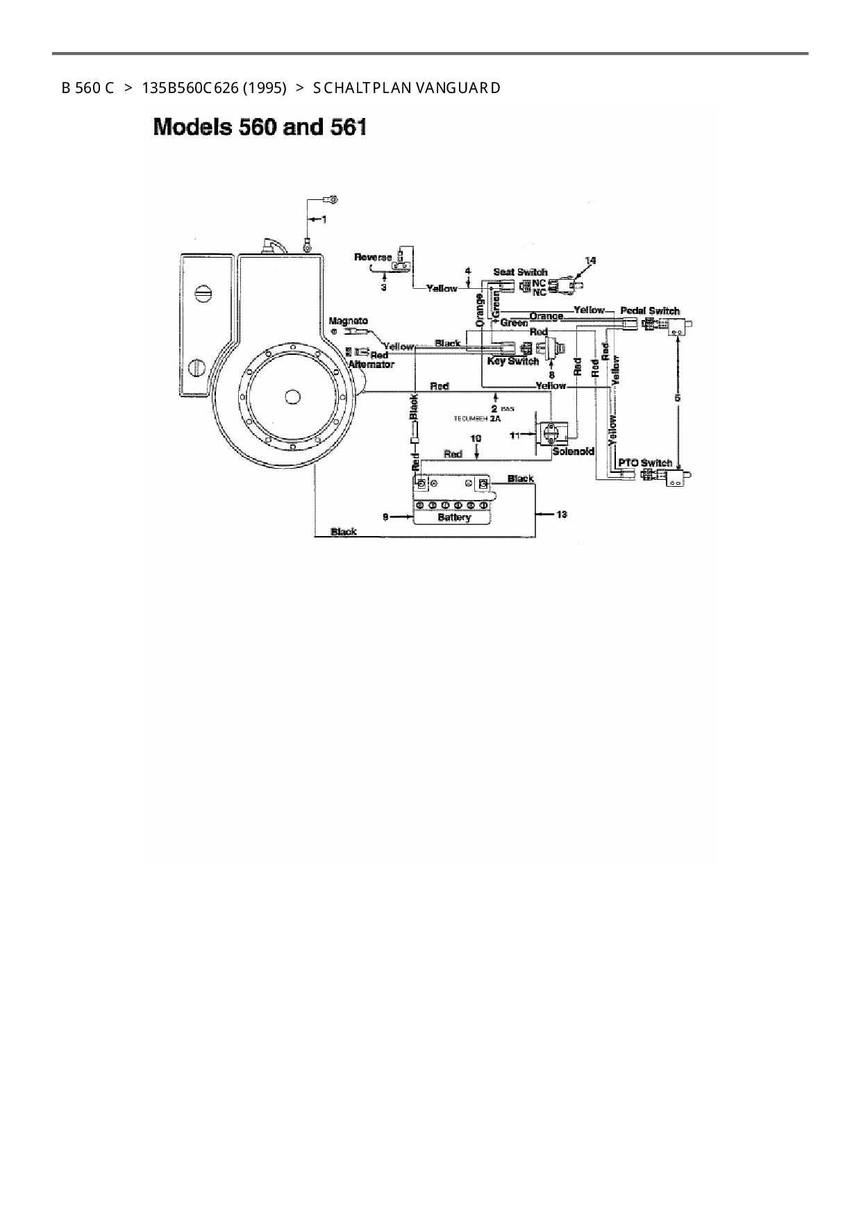 Ersatzteile für Rasentraktor Columbia B 560 C aus der Zeichnung Schaltplan Vanguard: