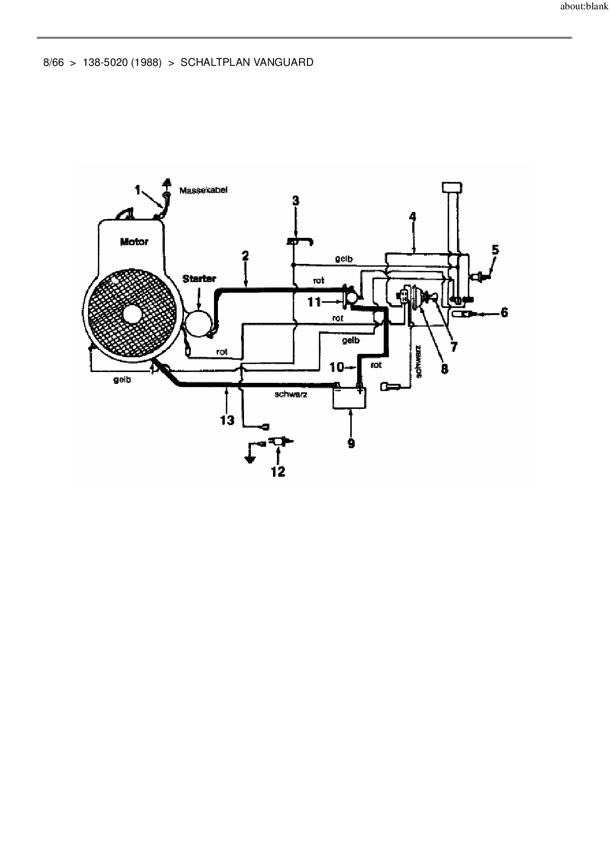 Ersatzteile für Rasentraktor MTD 8/66 aus der Zeichnung Schaltplan Vanguard:
