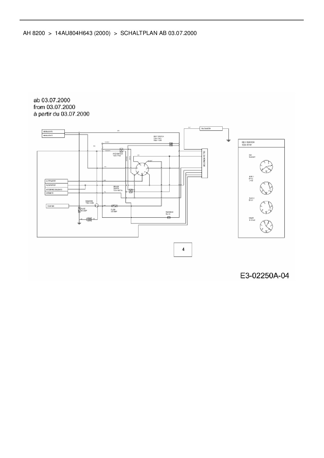 Ersatzteile für Gartentraktor Yard-Man AH 8200 aus der Zeichnung Schaltplan ab 03.07.2000: