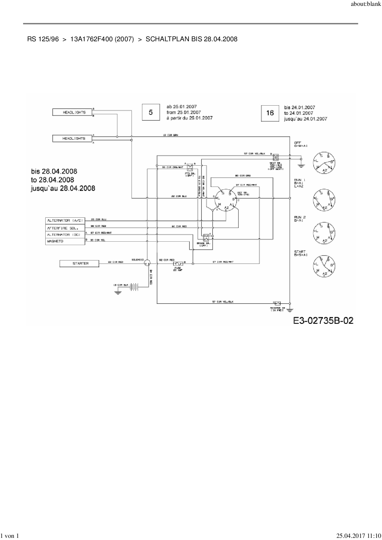 Ersatzteile für Rasentraktor MTD RS 125/96 aus der Zeichnung Schaltplan bis 28.04.2008: