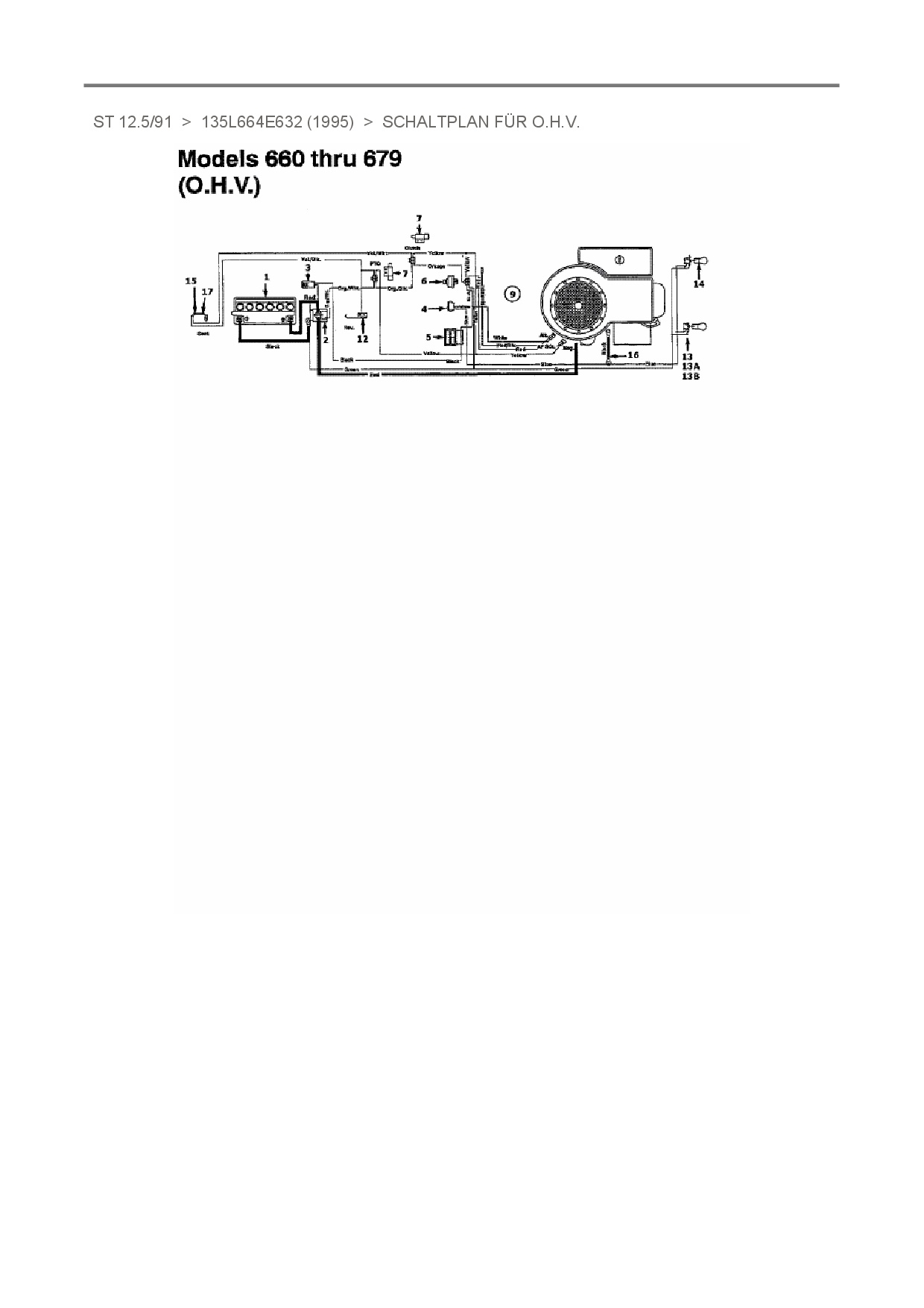 Ersatzteile für Rasentraktor Motec ST 12.5/91 aus der Zeichnung Schaltplan für O.H.V.: