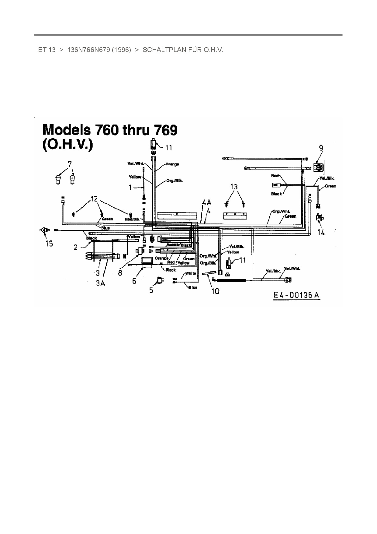 Ersatzteile für Rasentraktor White ET 13 aus der Zeichnung Schaltplan für O.H.V.:
