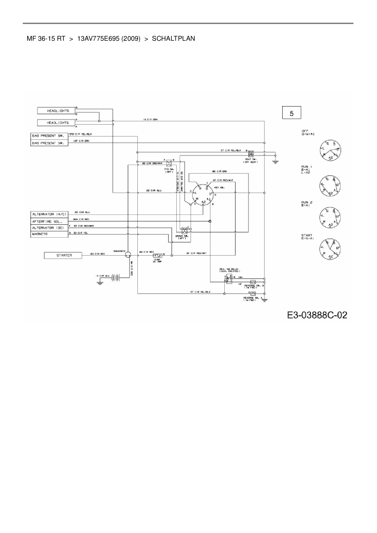 Ersatzteile für Rasentraktor Massey Ferguson MF 36-15 RT aus der Zeichnung Schaltplan:
