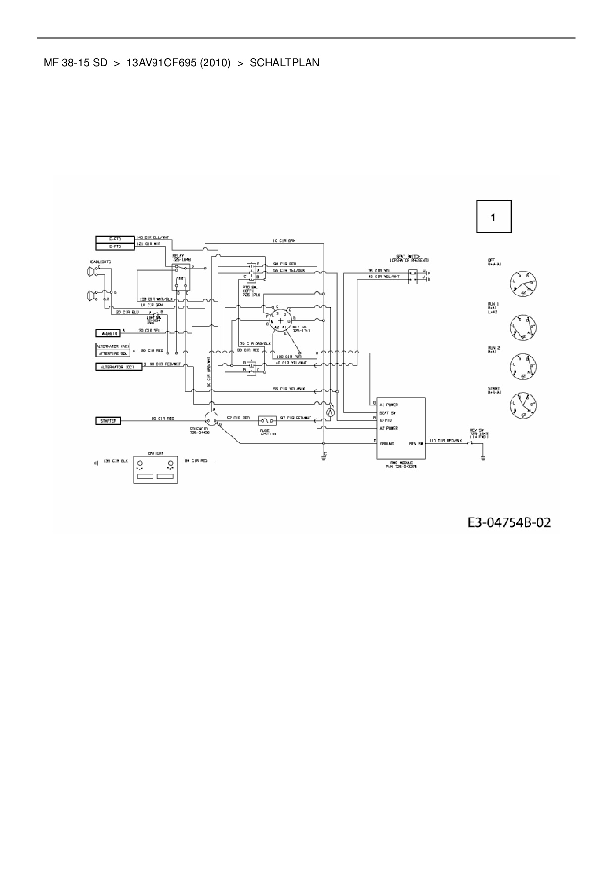 Ersatzteile für Rasentraktor Massey Ferguson MF 38-15 SD aus der Zeichnung Schaltplan: