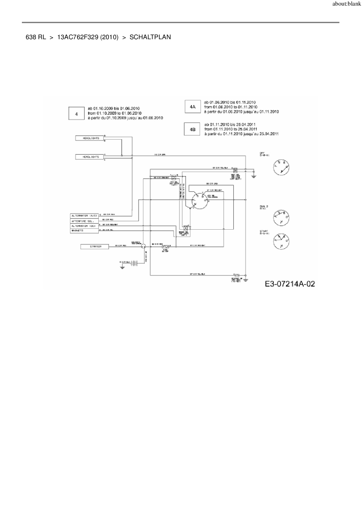 Ersatzteile für Rasentraktor MTD 638 RL aus der Zeichnung Schaltplan: