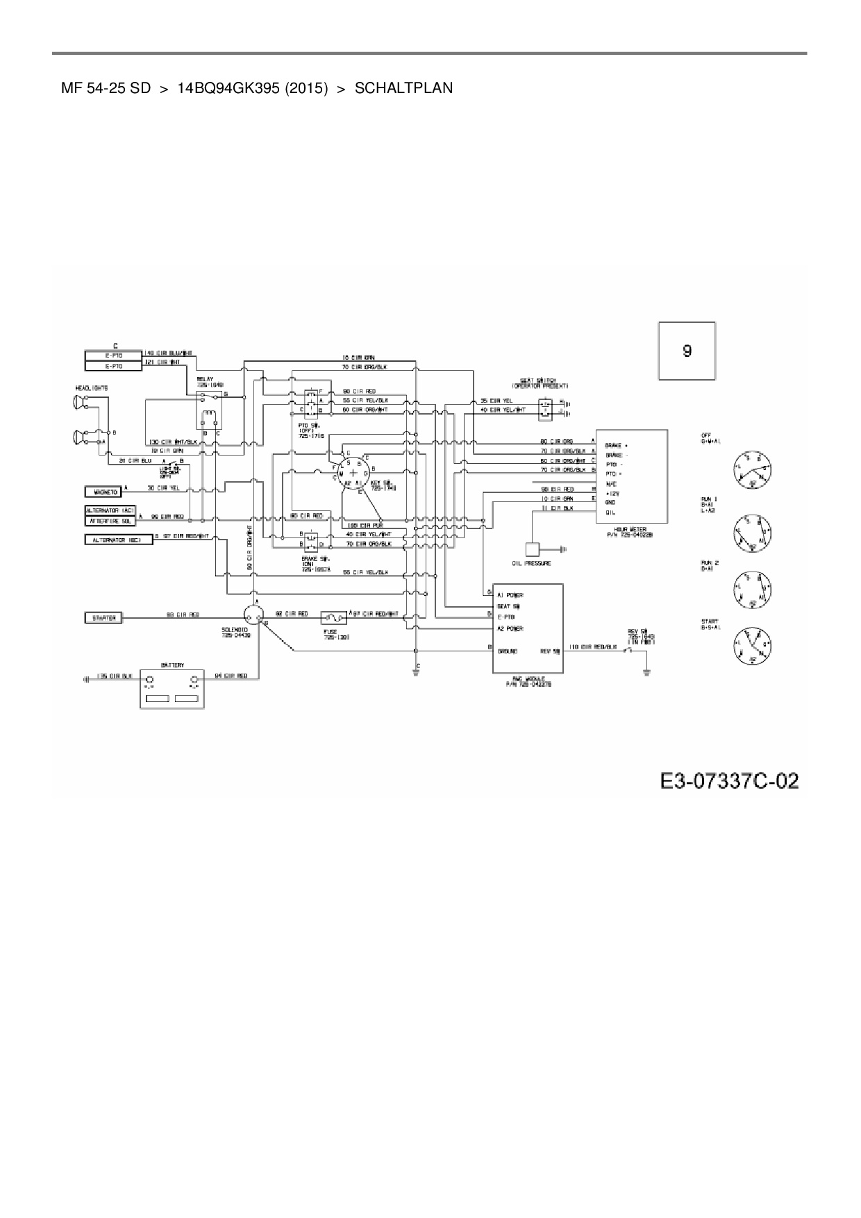 Ersatzteile für Gartentraktor Massey Ferguson MF 54-25 SD aus der Zeichnung Schaltplan: