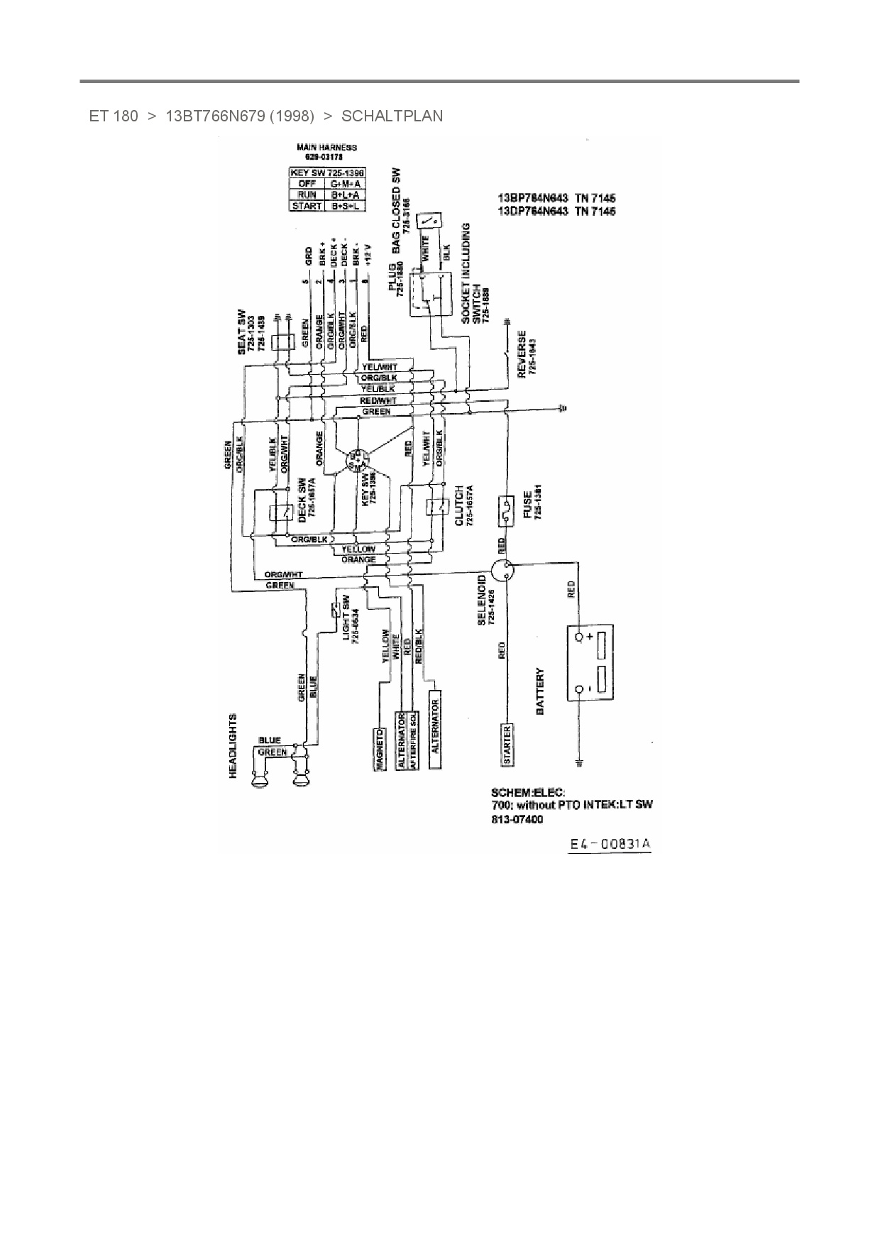 Ersatzteile für Rasentraktor White ET 180 aus der Zeichnung Schaltplan: