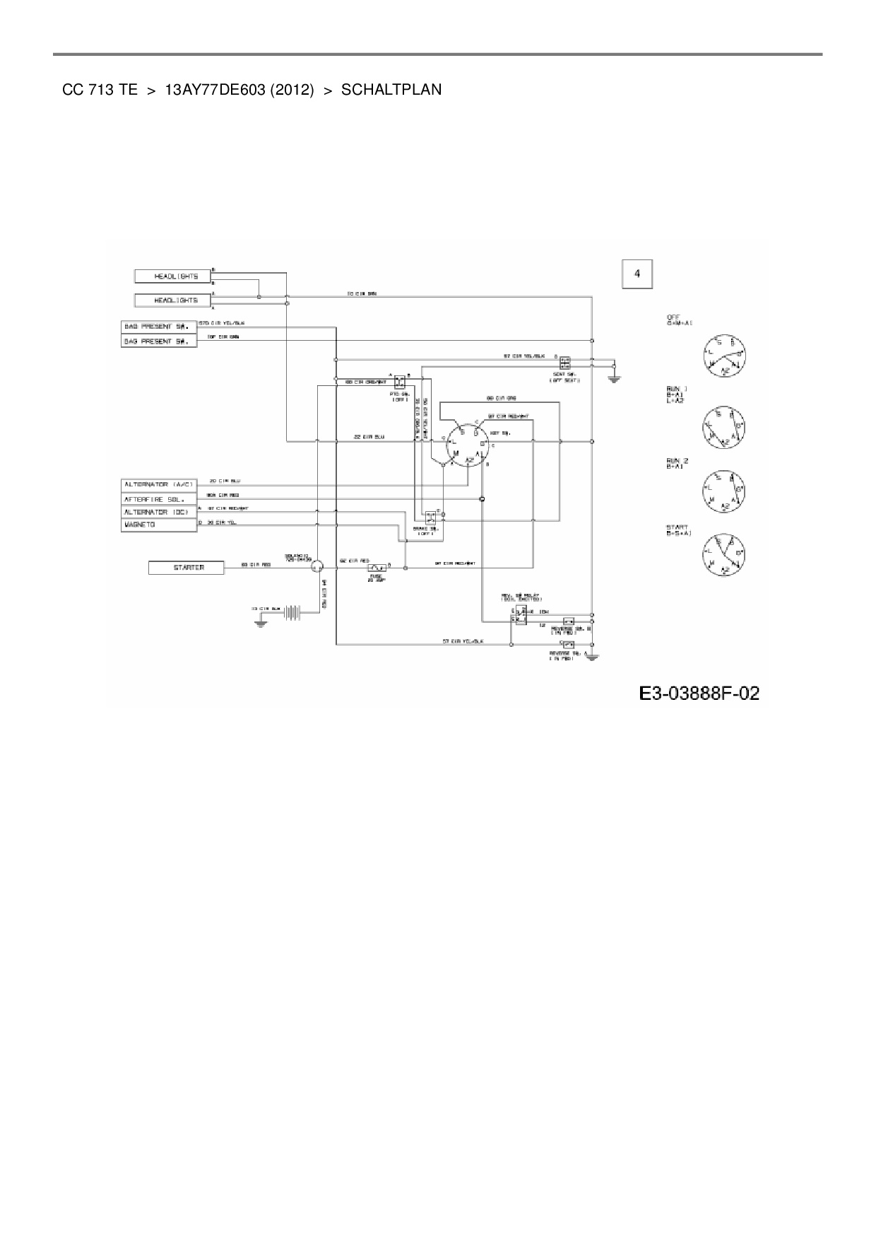 Ersatzteile für Rasentraktor Cub Cadet CC 713 TE aus der Zeichnung Schaltplan: