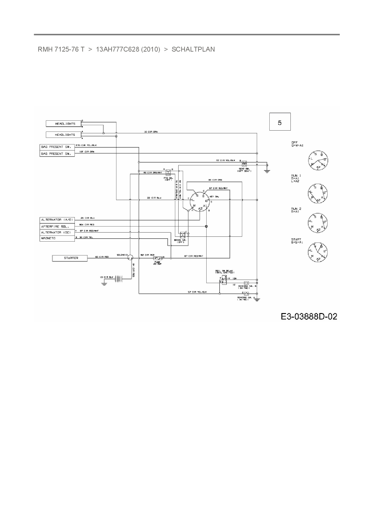 Ersatzteile für Rasentraktor Raiffeisen RMH 7125-76 T aus der Zeichnung Schaltplan: