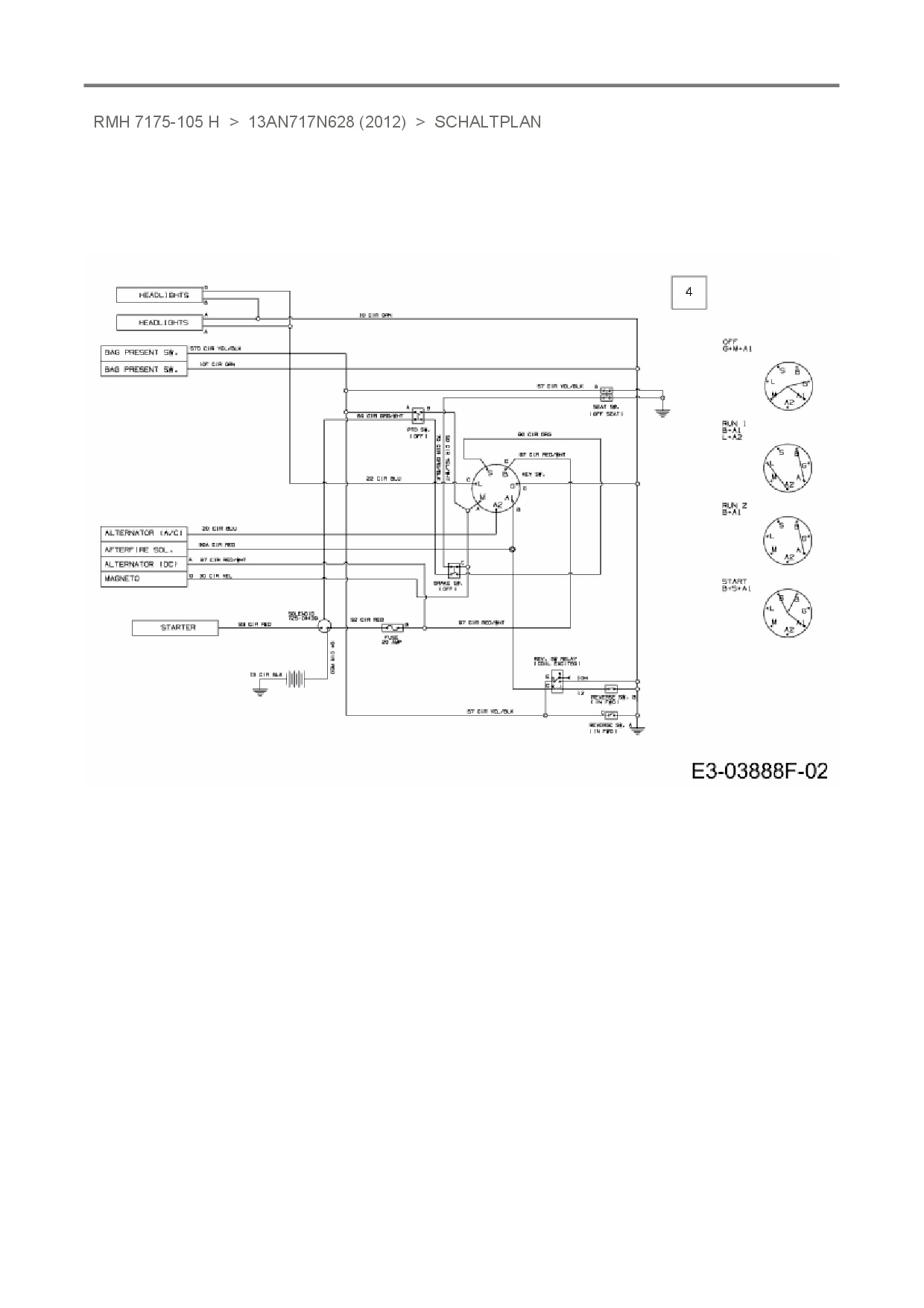 Ersatzteile für Rasentraktor Raiffeisen RMH 7175-105 H aus der Zeichnung Schaltplan:
