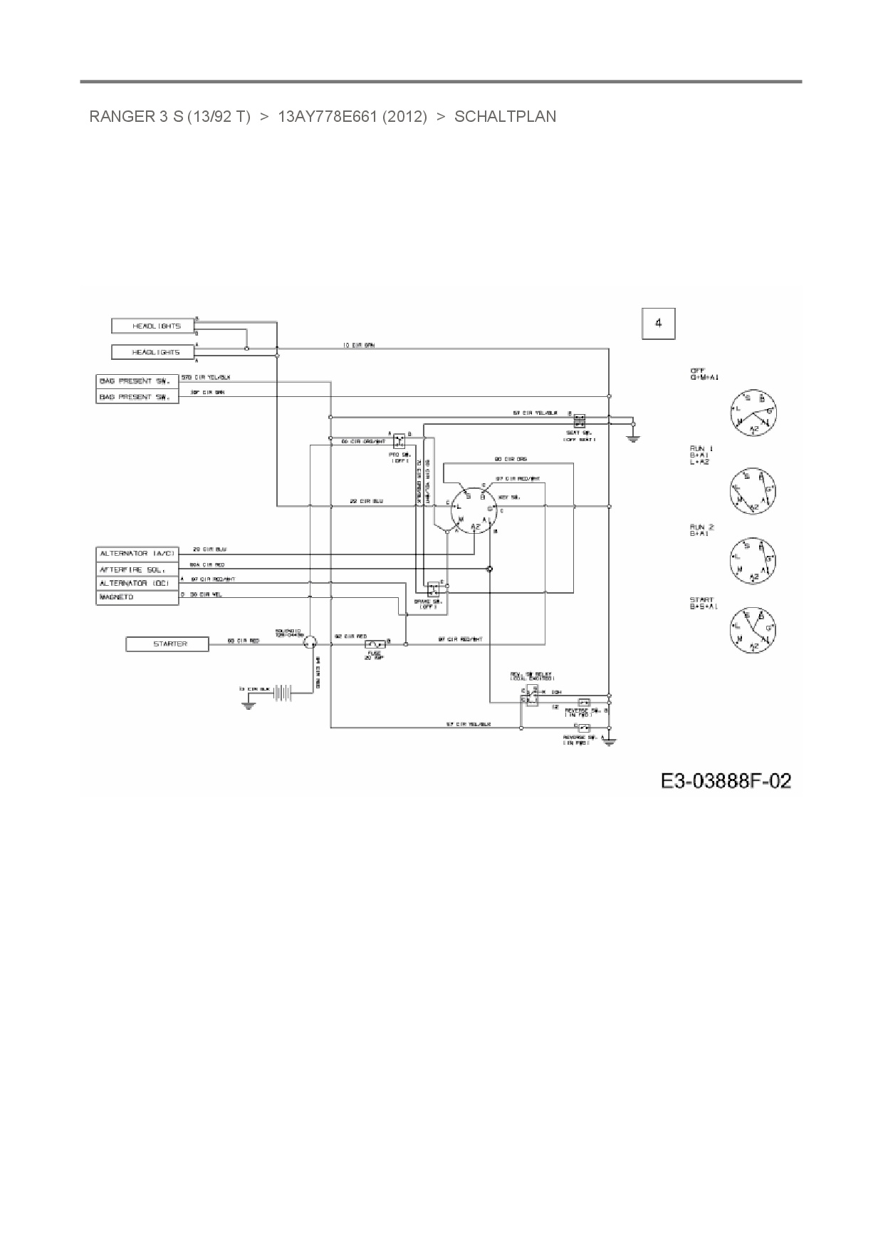 Ersatzteile für Rasentraktor Ranger Ranger 3 S (13/92 T) aus der Zeichnung Schaltplan: