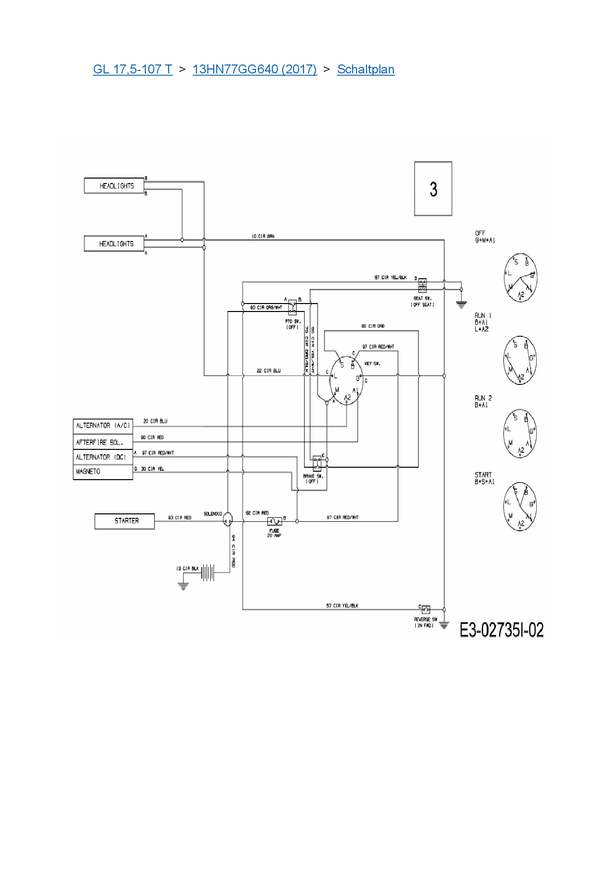 Ersatzteile für Rasentraktor Gartenland GL 17,5-107 T aus der Zeichnung Schaltplan: