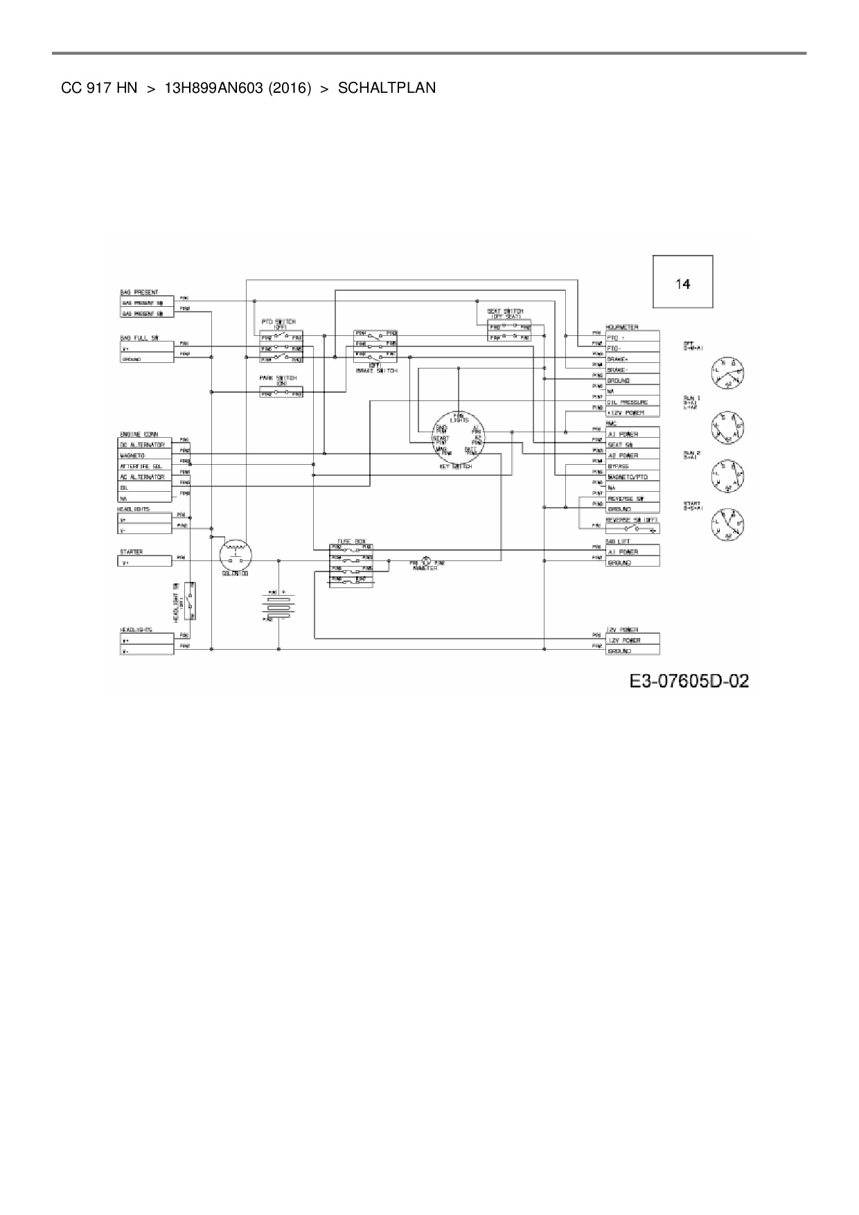 Ersatzteile für Rasentraktor Cub Cadet CC 917 HN aus der Zeichnung Schaltplan:
