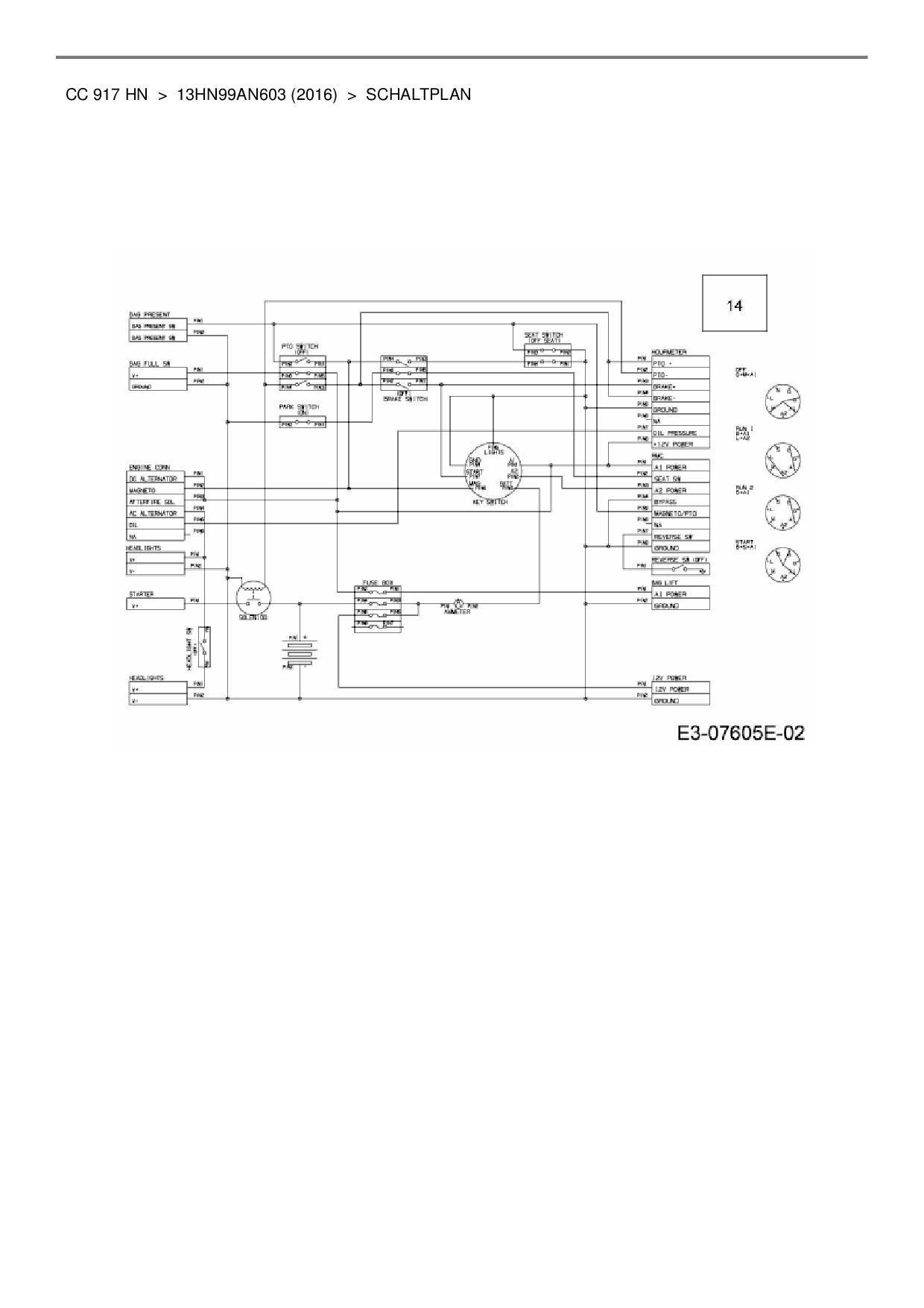 Ersatzteile für Rasentraktor Cub Cadet CC 917 HN aus der Zeichnung Schaltplan: